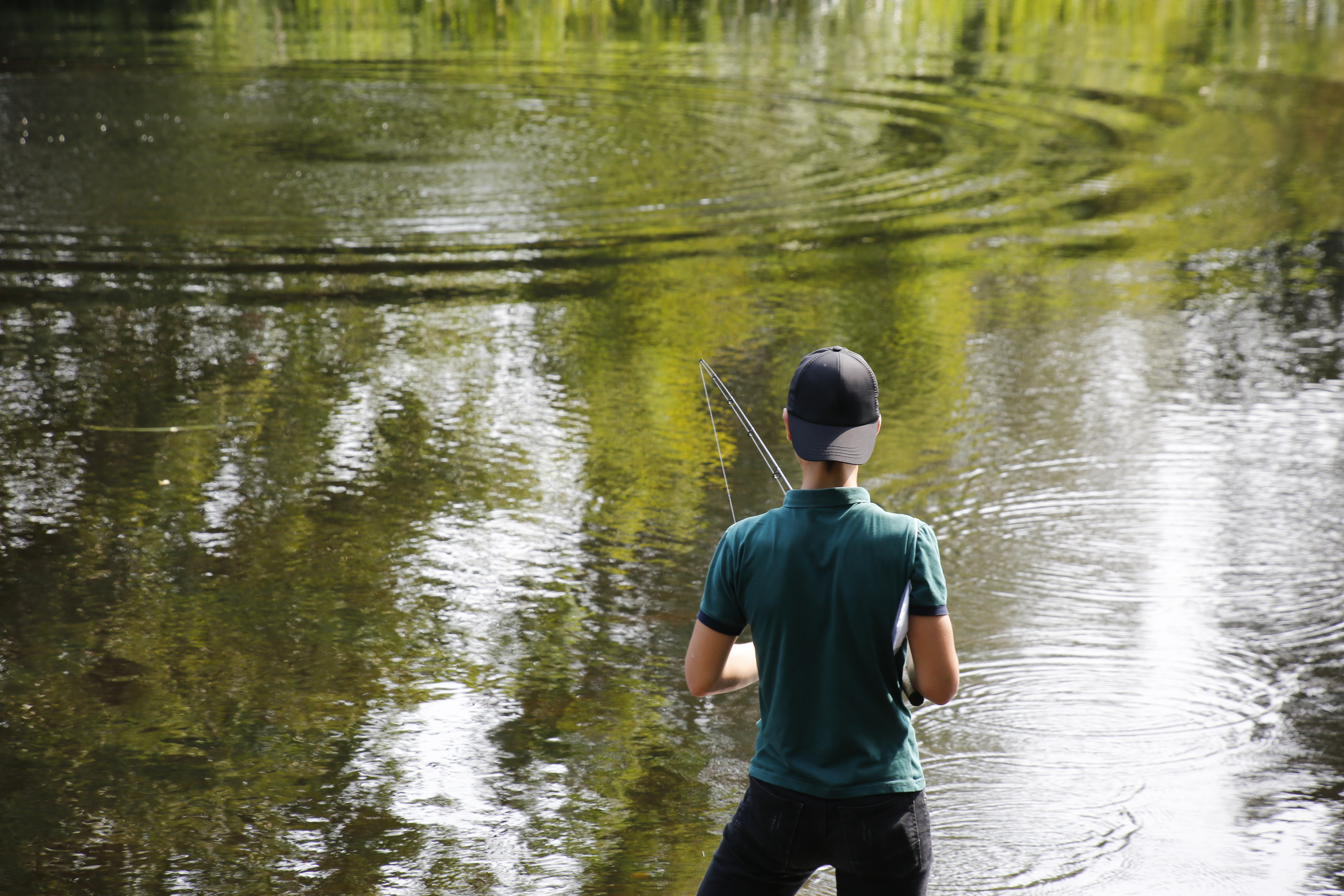 - Beskrivning: Malek Naser (14 år) har precis vevat in när fisken vakar, Ungdomsfiskets dag i Mörrumsån, I klassiskt augustiväder med en vattentemperatur strax över sexton grader provade 40 barn och ungdomar på att fiska i Mörrumsån