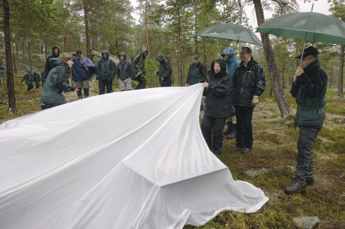 - Beskrivning: Jämtlands landshövding Maggi Mikaelsson avtäcker stenbänk, Ekopark Håckren, invigning