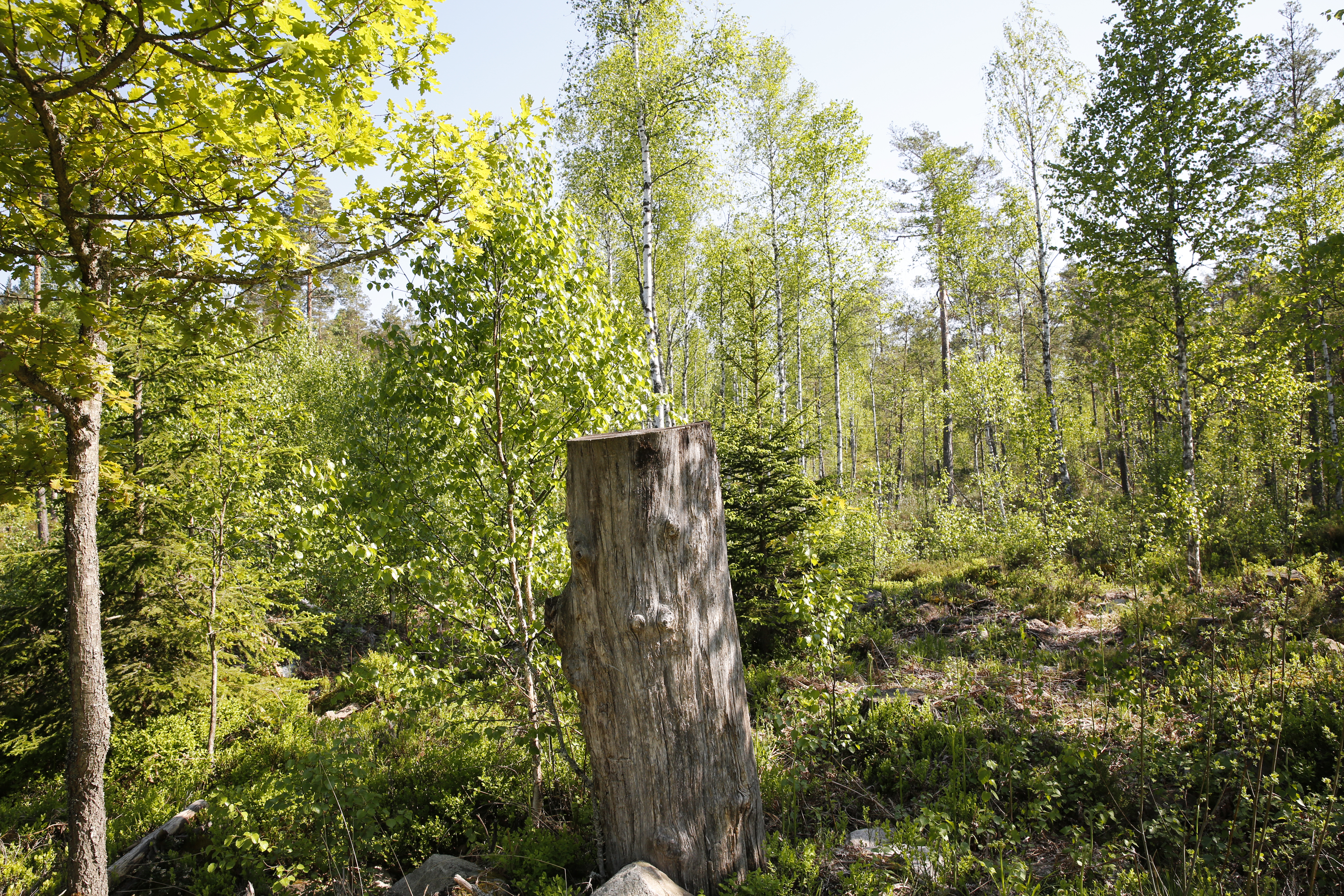 - Beskrivning: Nergrävda stubbar skapar tillgång på död ved i olika nedbrytningsstadier, Med aktiv skötsel skapas nya naturvärden, Trots att de flesta arter gynnas av gammelskog och död ved visar ekoparkssatsningen att flera naturvärden kan kopplas till en aktiv skötsel. I synnerhet i de södra delarna av landet där Sveaskog arbetar intensivt med att skapa och förstärka redan befintliga naturvärden. Hittills har Sveaskog restaurerat drygt 4300 hektar skogsmark i ekoparkerna. naturvård, naturvårdsinsatser