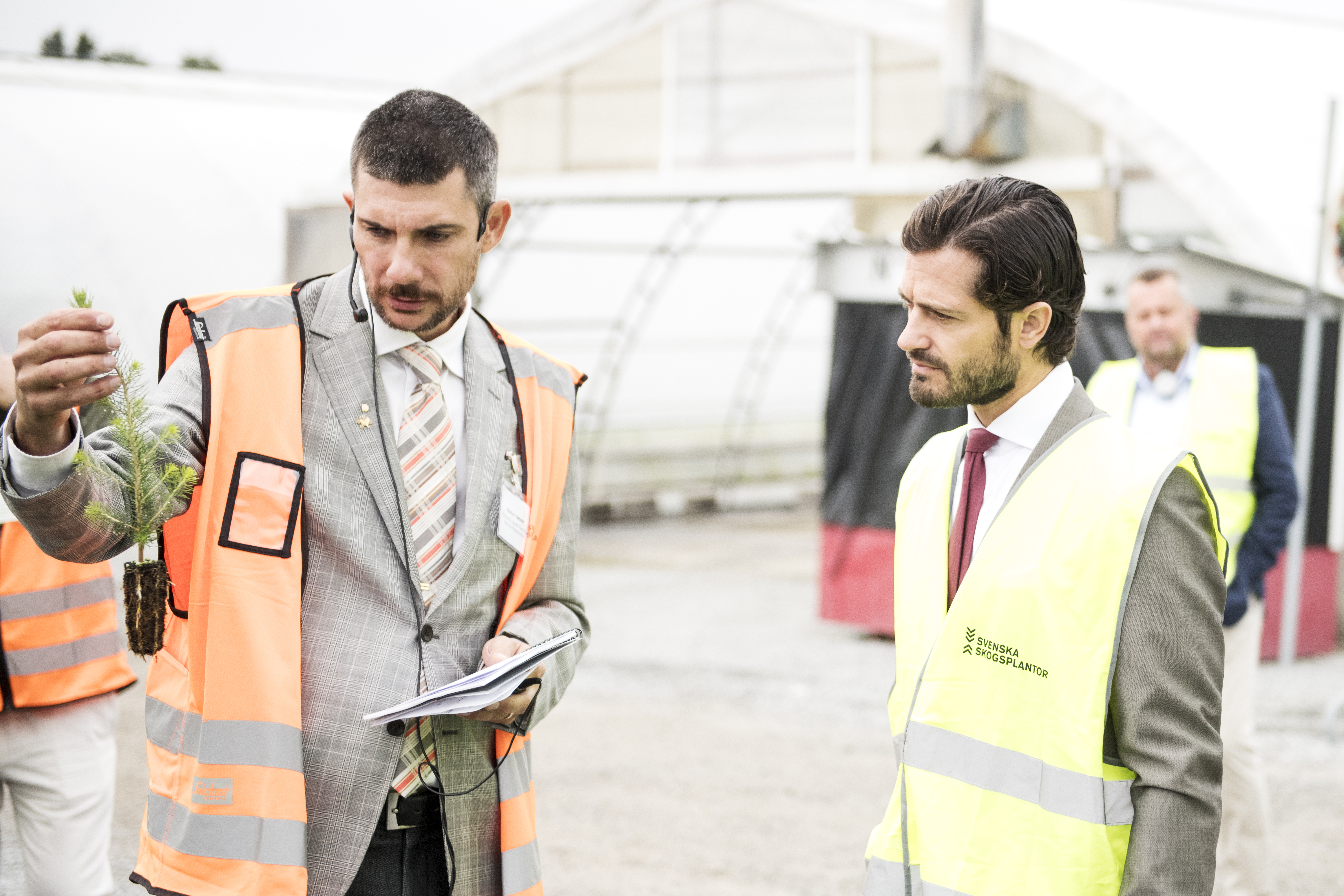 - Beskrivning: Stefan Ivarsson och prins Carl Philip. H.K.H. Prins Carl Philip, SSP, svenska skogsplantor, besök, Carl Philip Edmund Bertil, Prins av Sverige, Hertig av Värmland besöker Lugnets plantskola.