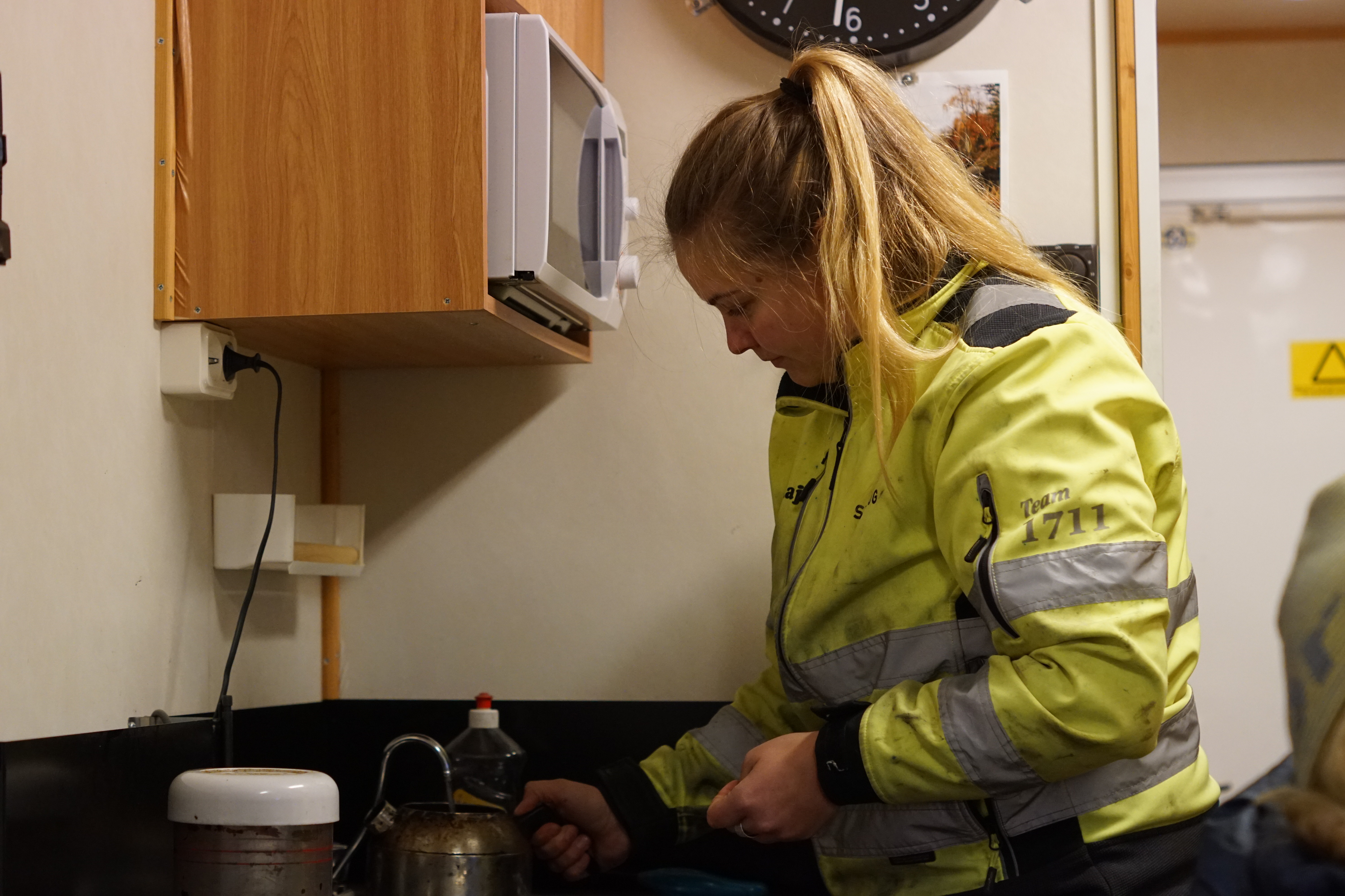 - Beskrivning: Maja Henriksson fixar kaffe i kojan. Helene Samuelsson besöker MO Nord.