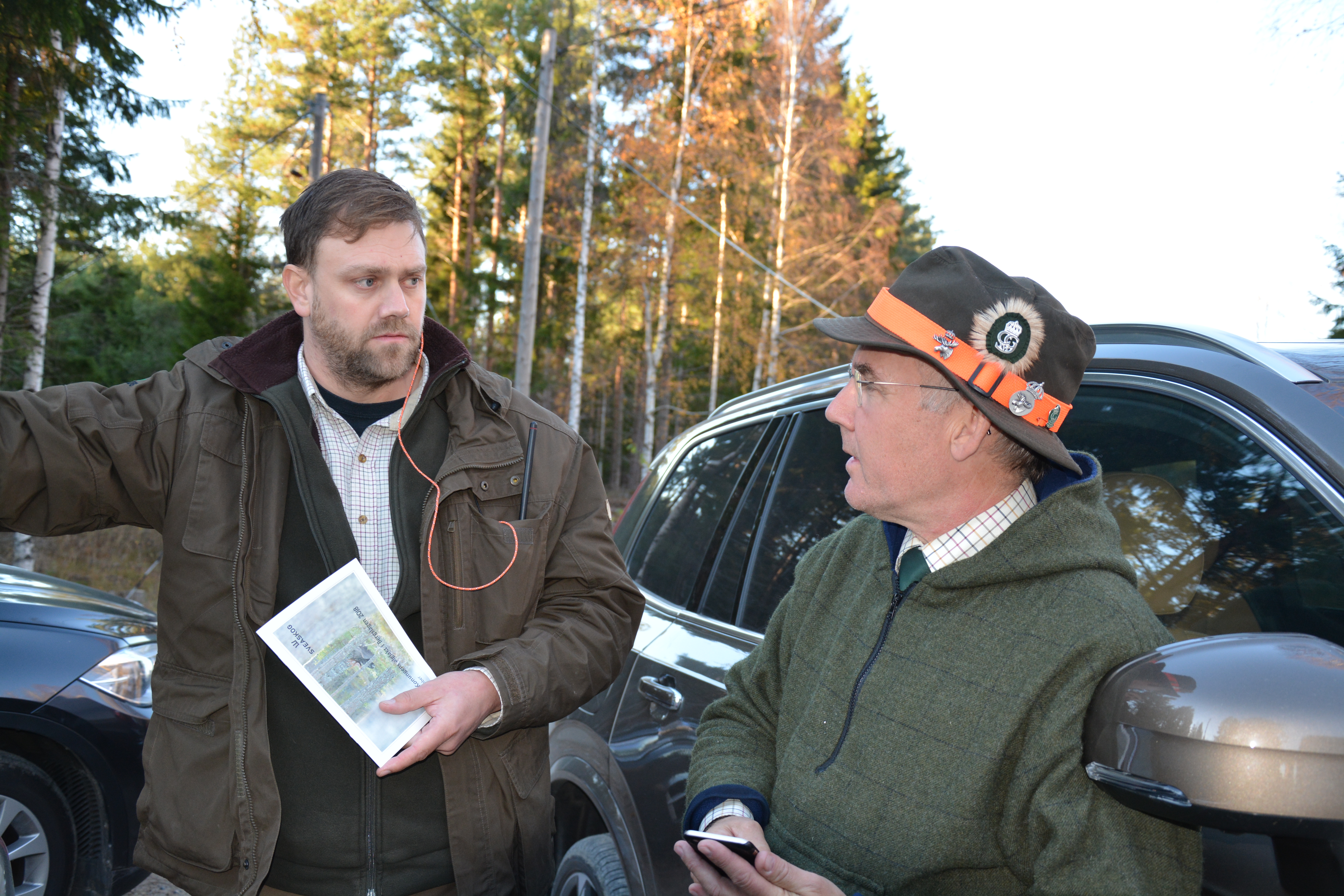 Börje Eriksson och jaktledare Jimmy Pettersson i samspråk
