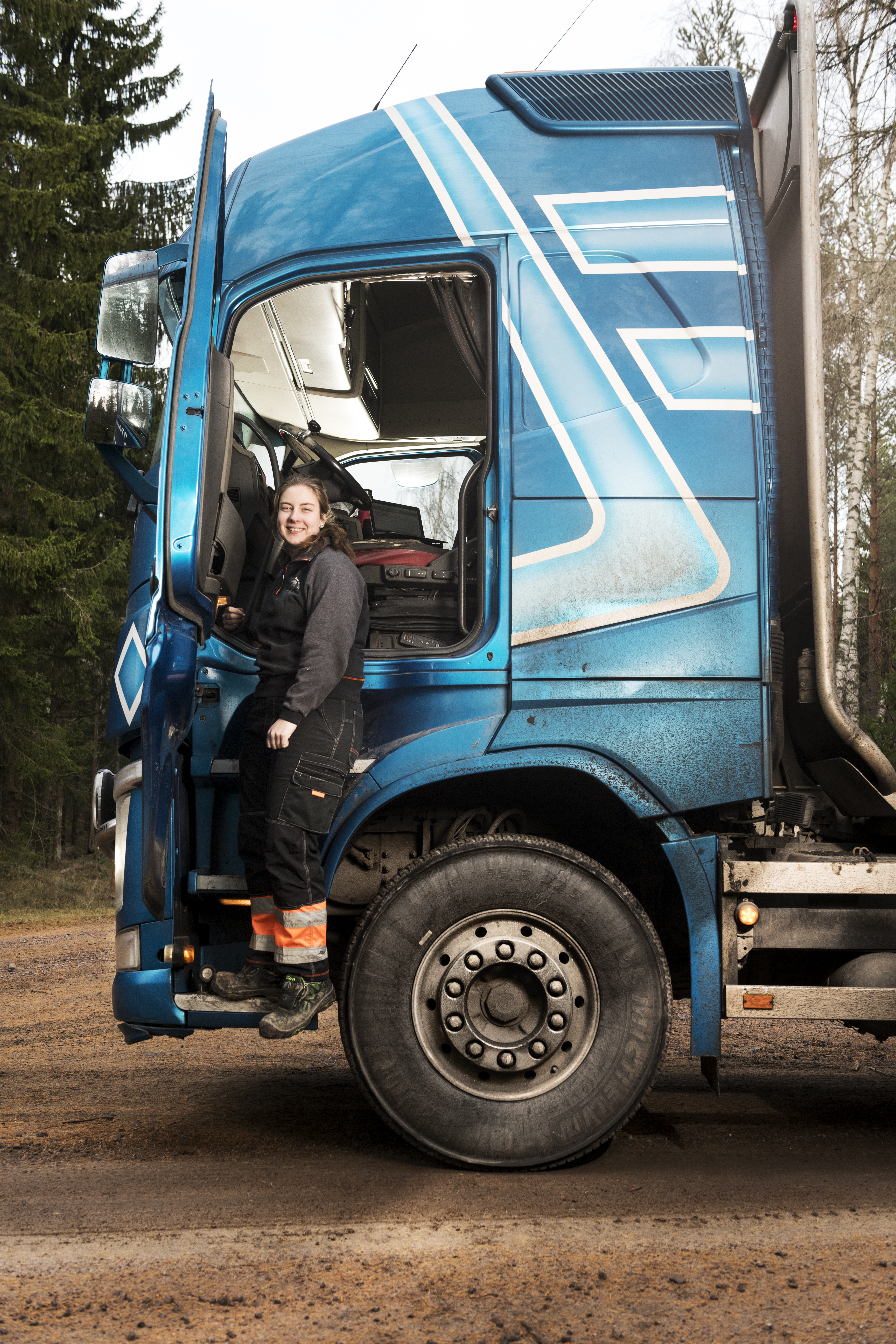 • Beskrivning: Isabelle Nilsson, Livet i hytten, maskinförare, timmerbilschaufförer, Från Forum Sveaskog, lastbilschaufförer