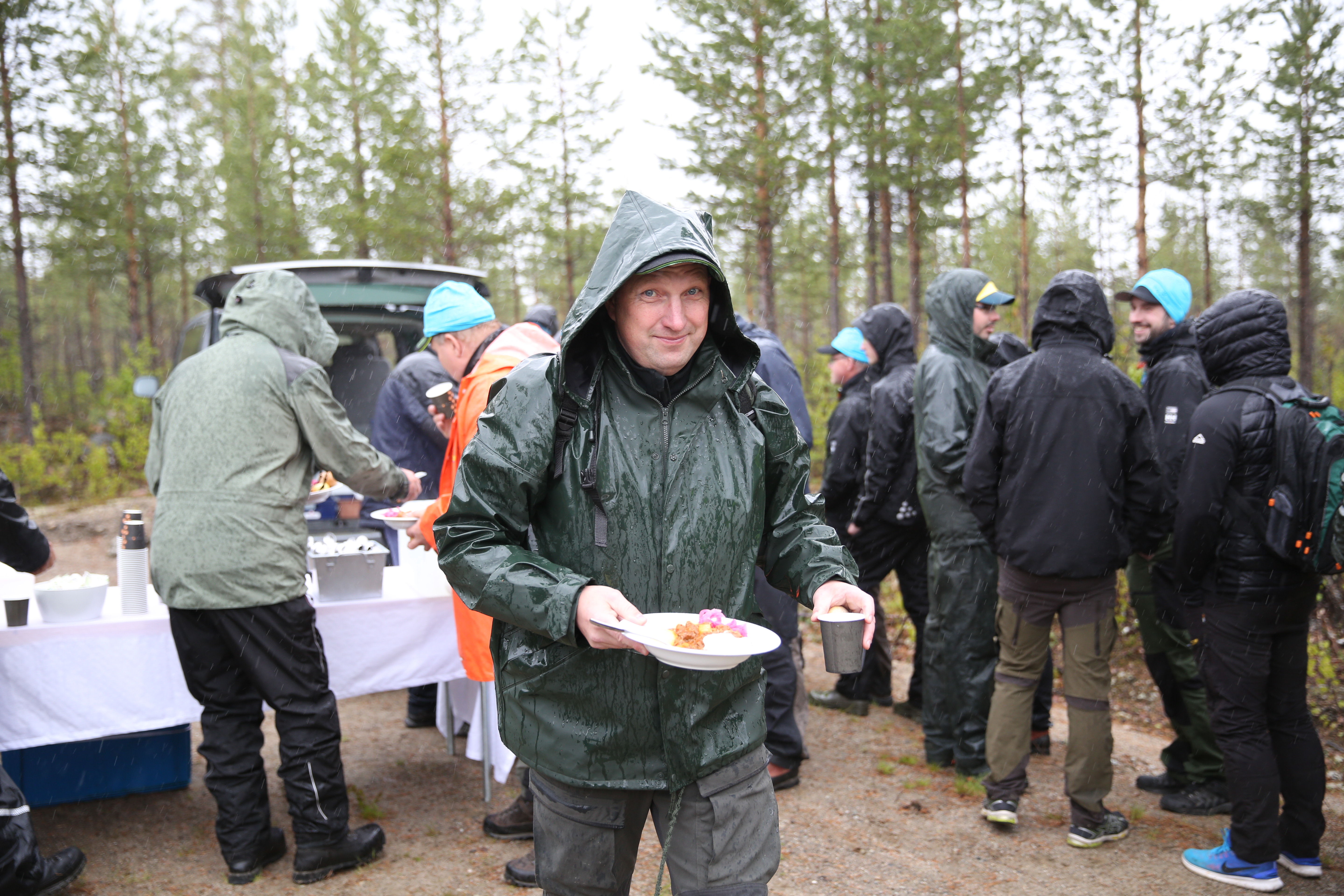 - Beskrivning: Medarbetardagar MO Nord, måltid, mat, lunch, regnjacka, regnkläder