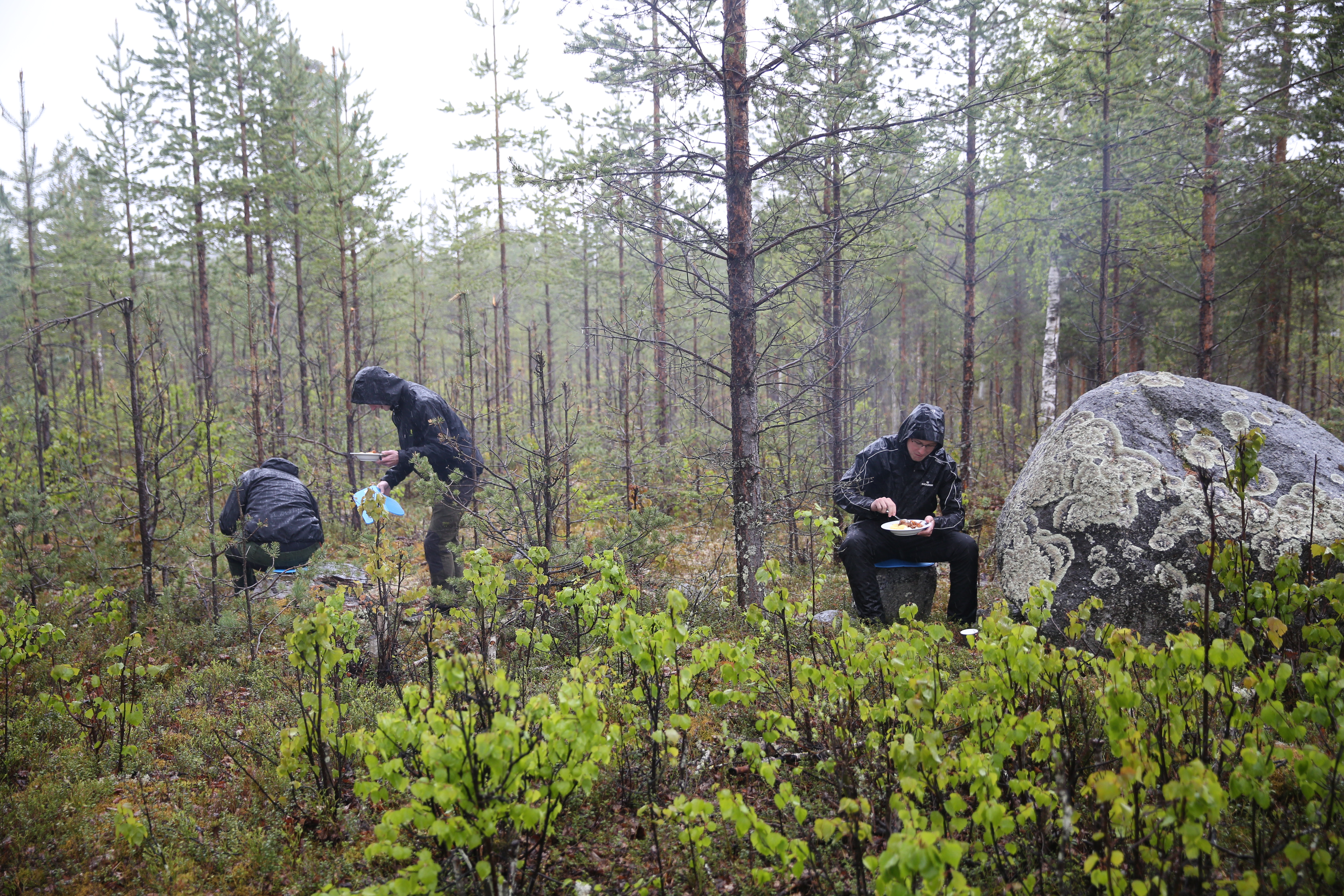 - Beskrivning: Medarbetarmöte MO Nord, måltid, mat, lunch, regnjacka, regnkläder