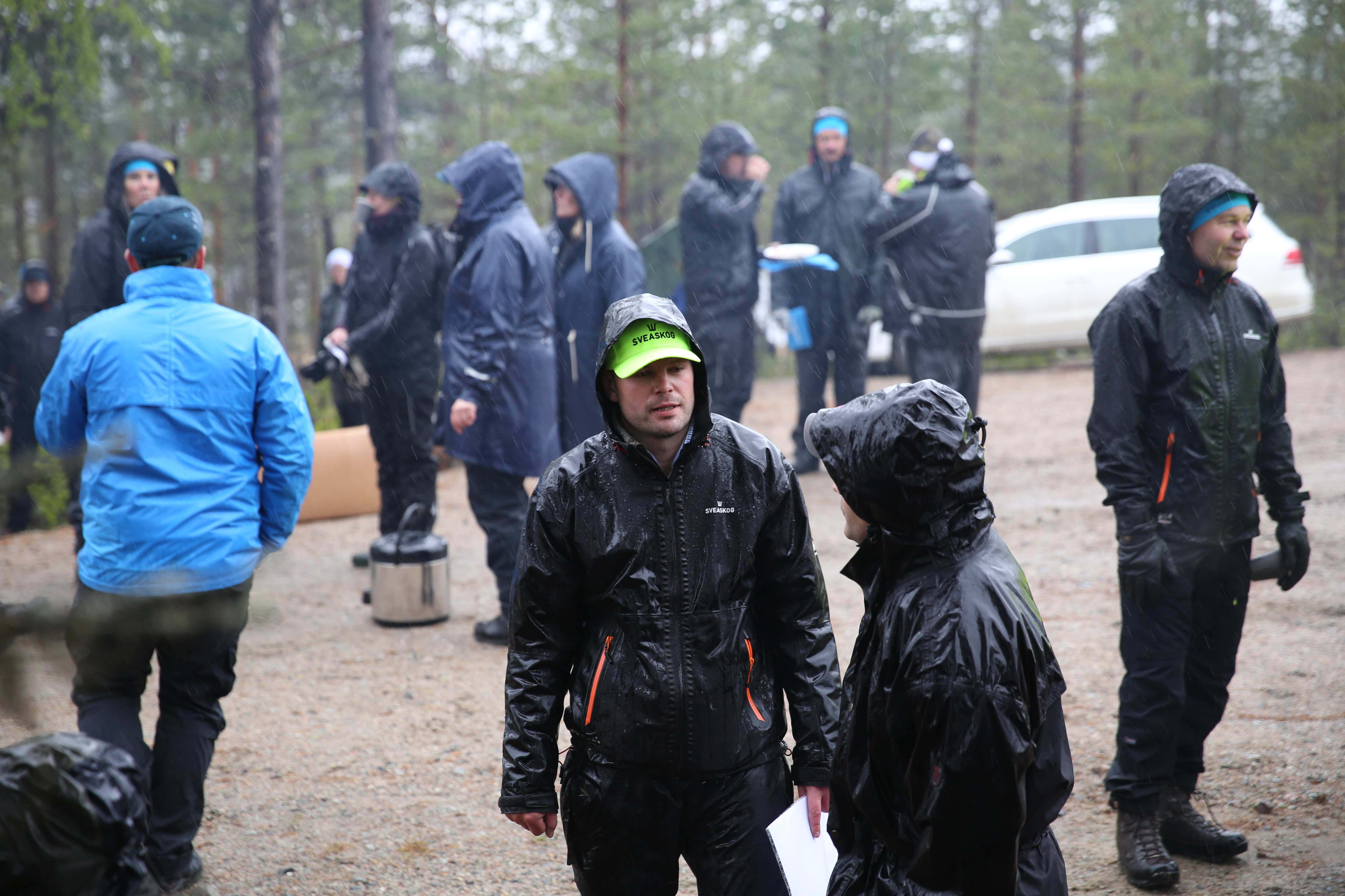 - Beskrivning: Medarbetarmöte MO Nord, regnjacka, regnkläder, kaffe, kaffepaus