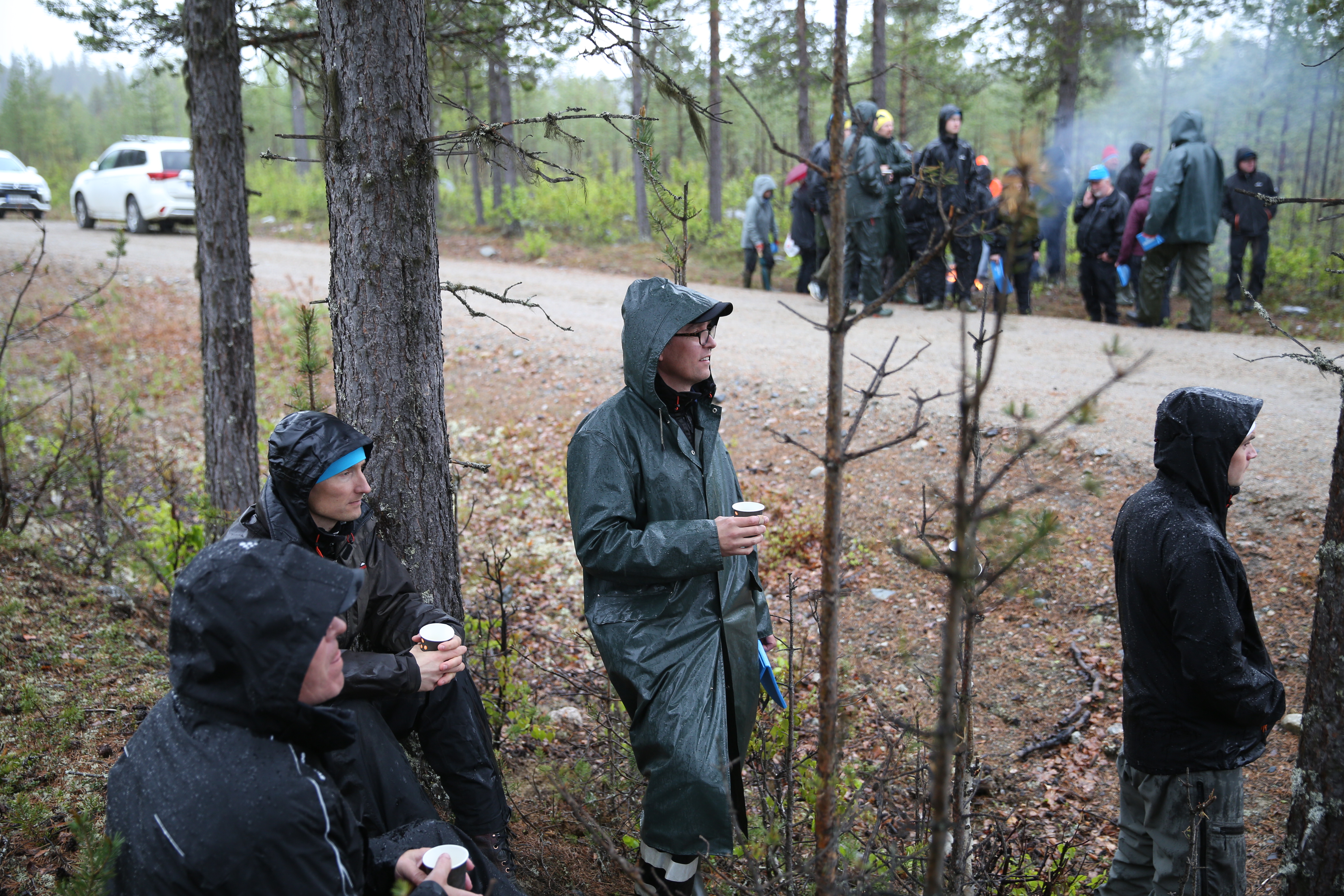 - Beskrivning: Medarbetarmöte MO Nord, regnjacka, regnkläder, kaffe, kaffepaus