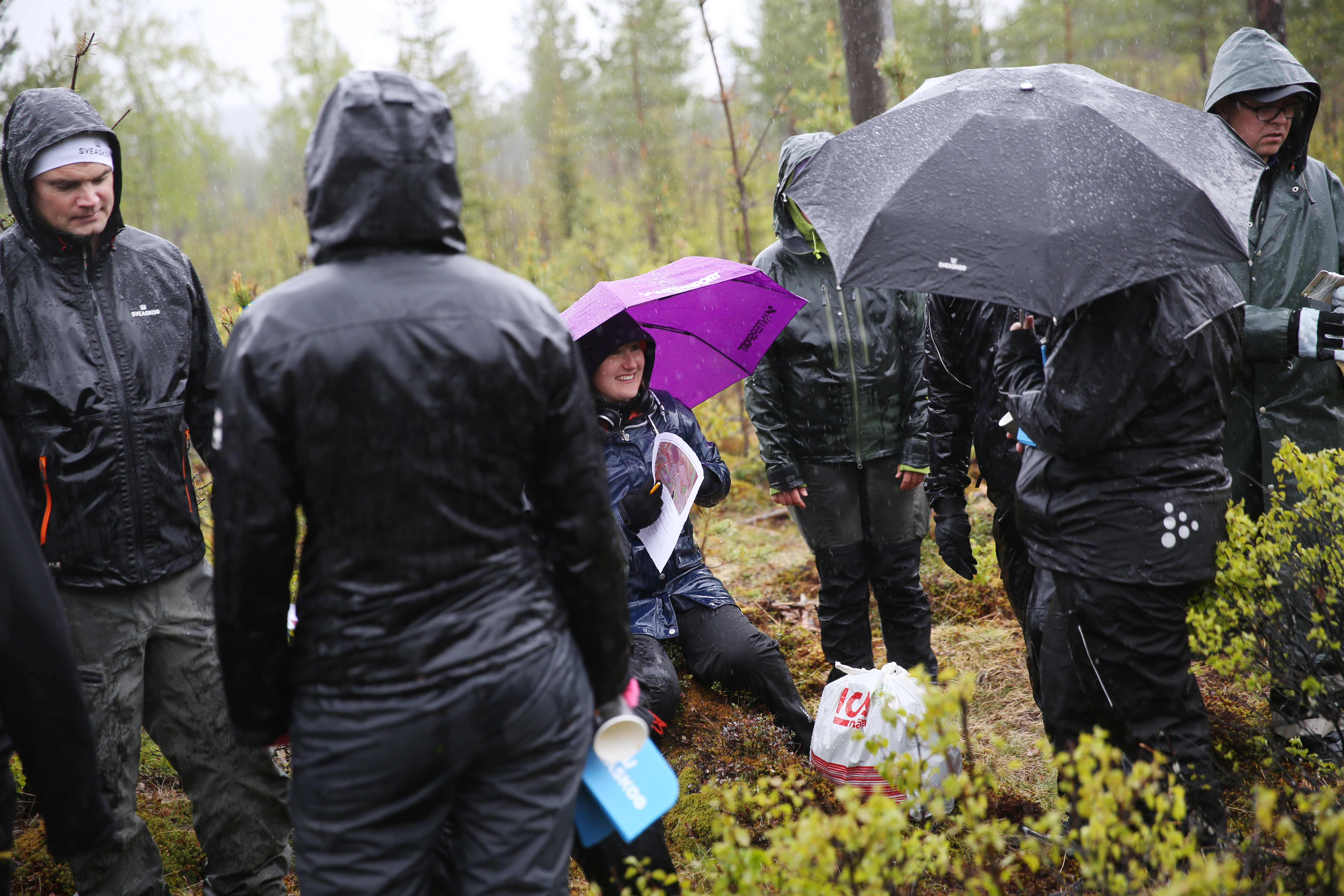 - Beskrivning: Medarbetarmöte MO Nord, regnjacka, regnkläder, paraply