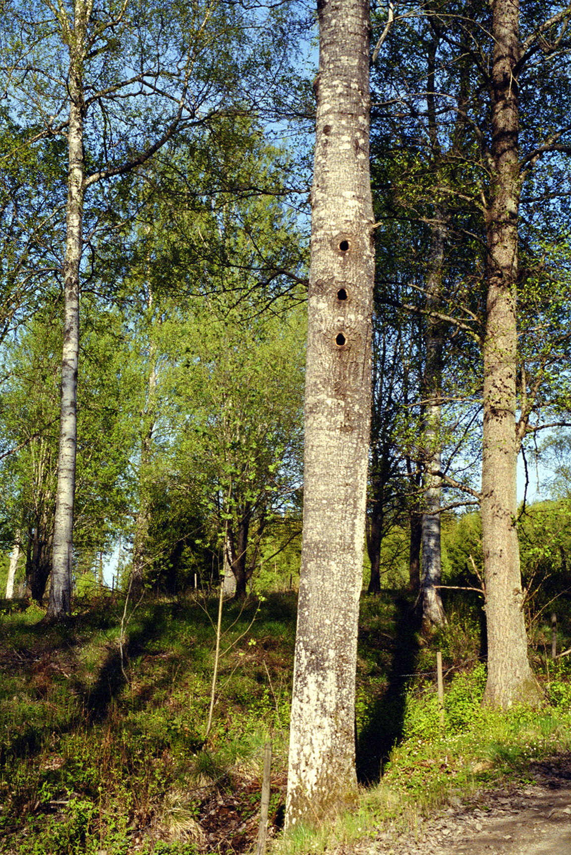 - Beskrivning: Jättelövträd, asp med bohål av spillkråkan