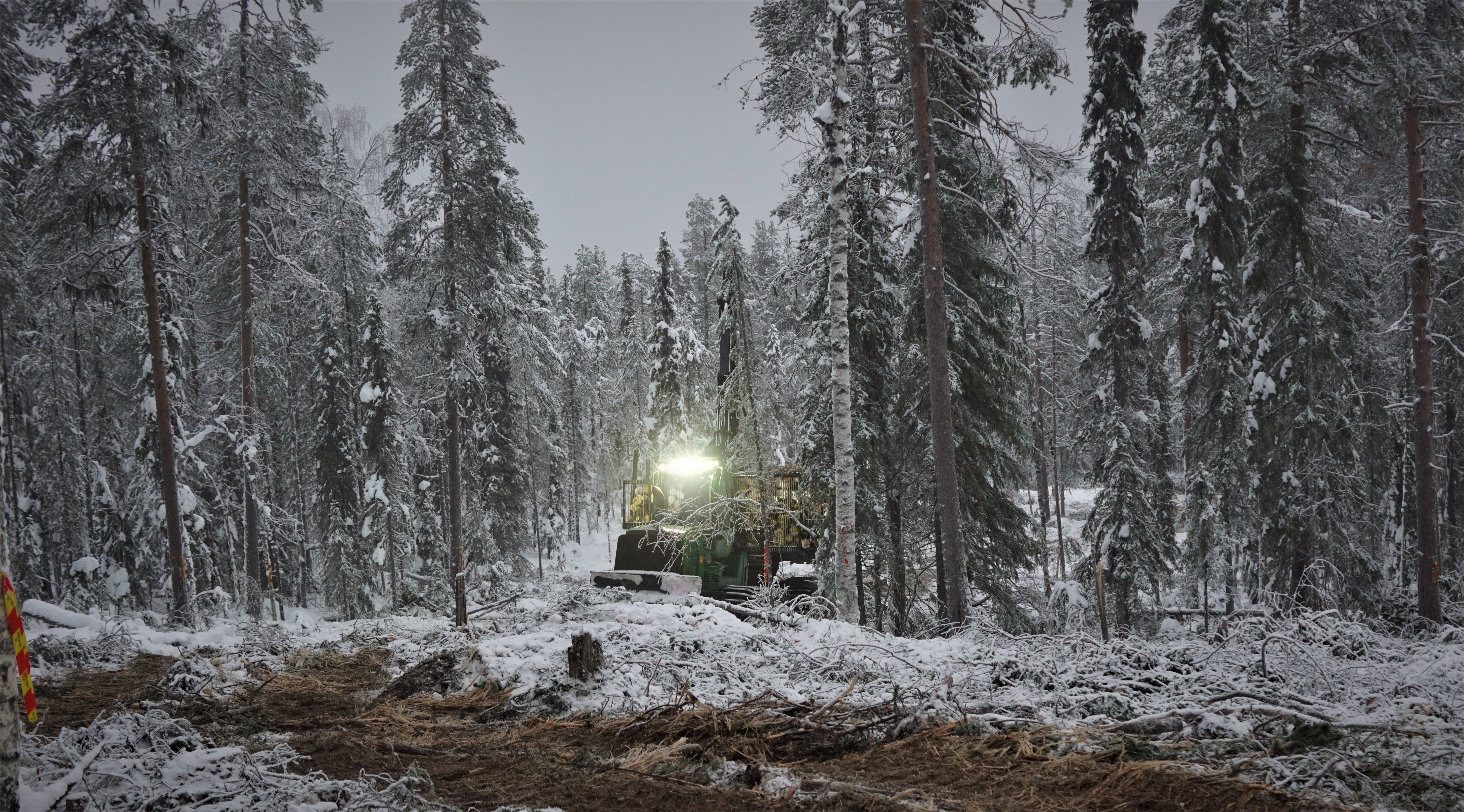 - Beskrivning: Maskinförare Tove Olai kör skotare MO Nord, Från Nord- till syd står Sveaskog och väntar på att unga utbildar sig för att arbeta i framtidsnäringen, skogsbruk, snö, skog, maskin
