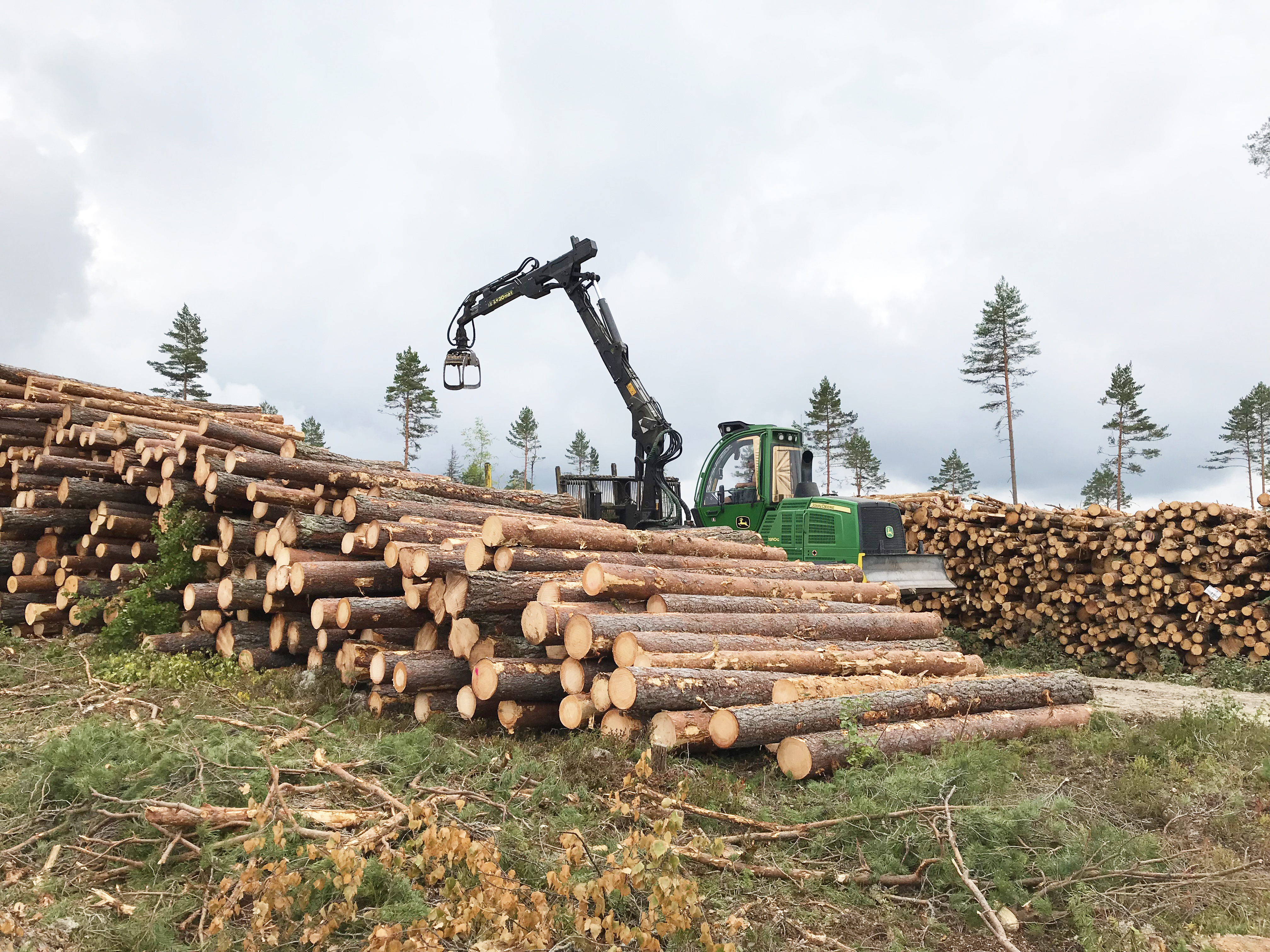 - Beskrivning: Skotare, avverkning, timmer, timmerupplägg, timmervälta, stockar