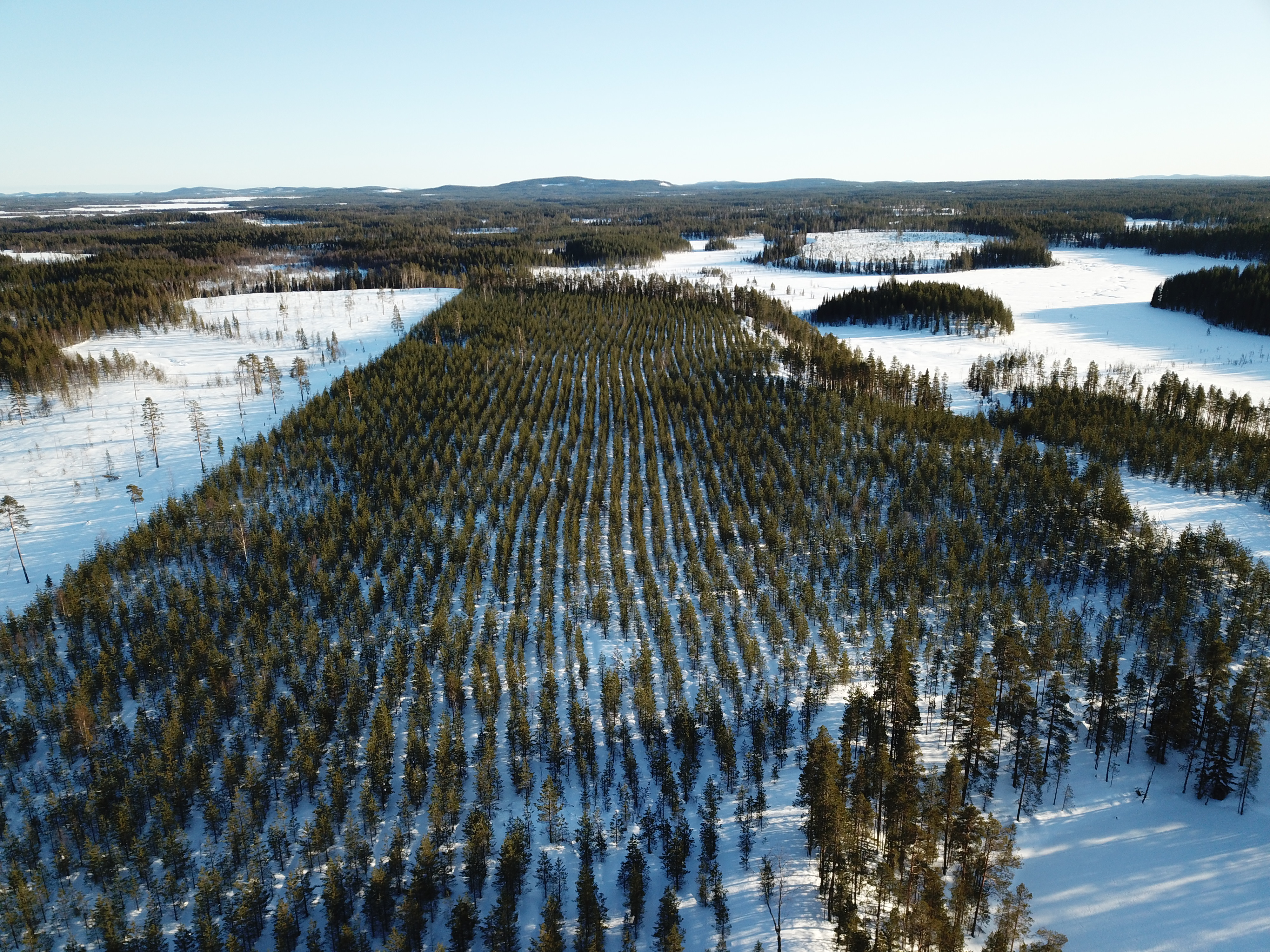 - Beskrivning: Fastighetsobjekt som låg till försäljning på Sveaskog.se i början av Mars 2020, Arvidsjaur Abborrtäsk, ovanifrån, landskap, skogslandskap, vy, skog