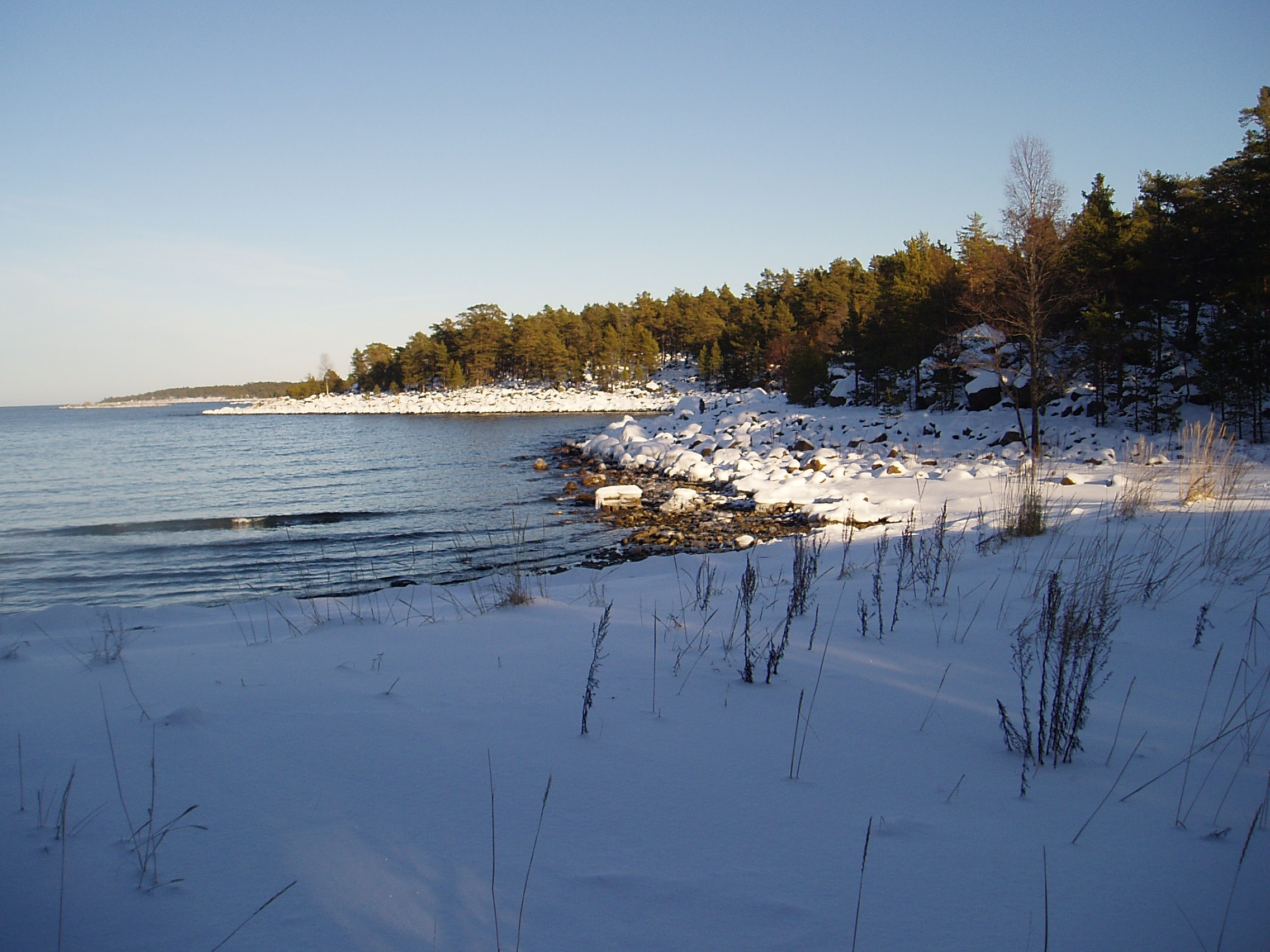 - Beskrivning: Bredsand i vinterskrud, ekopark Hornslandet