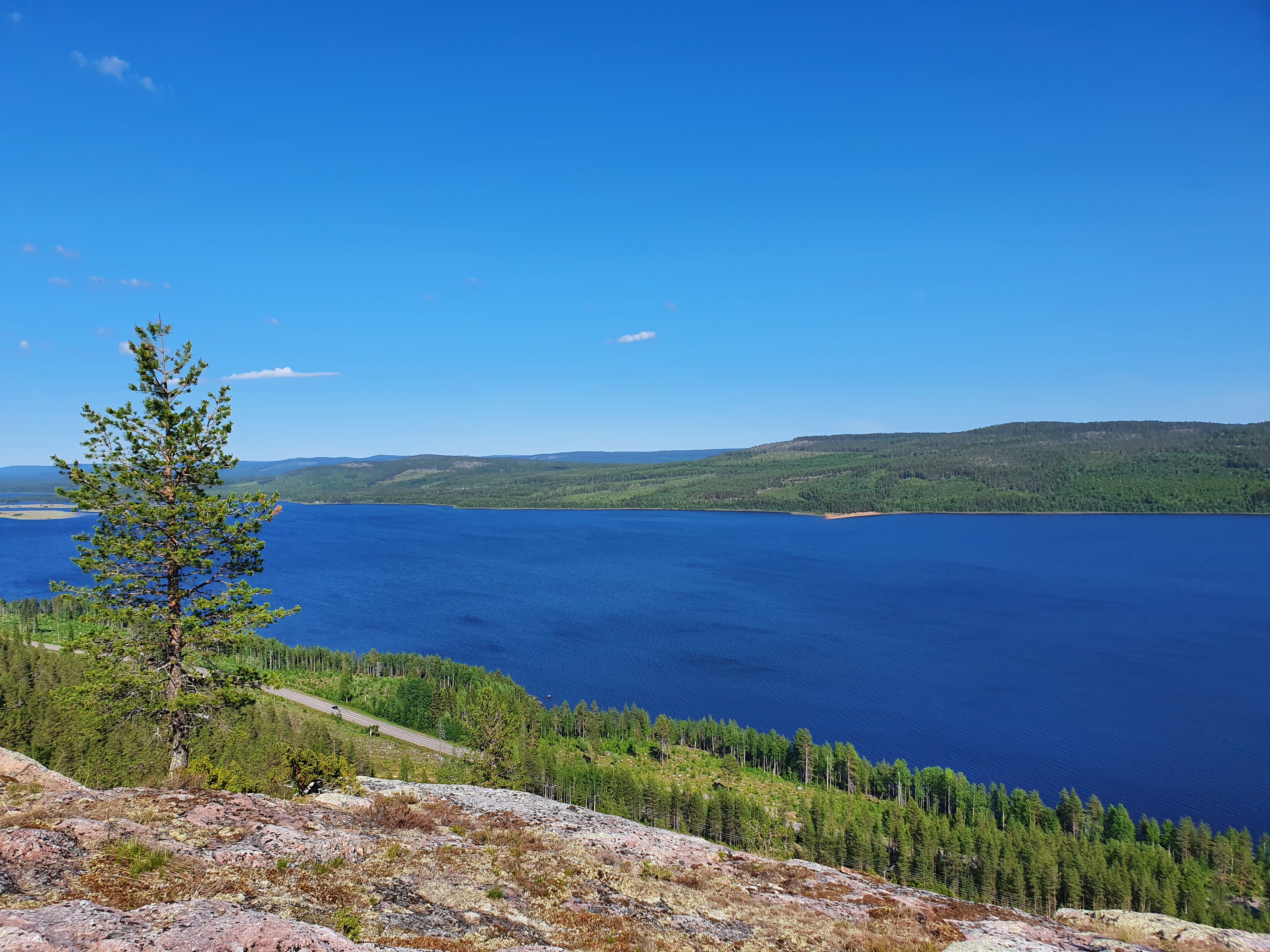 - Beskrivning: Malungsberget/Mjölåsberget utanför Överkalix. Utsikt över Kalix älv, Räktforsen och Räktforsberget, blå himmel