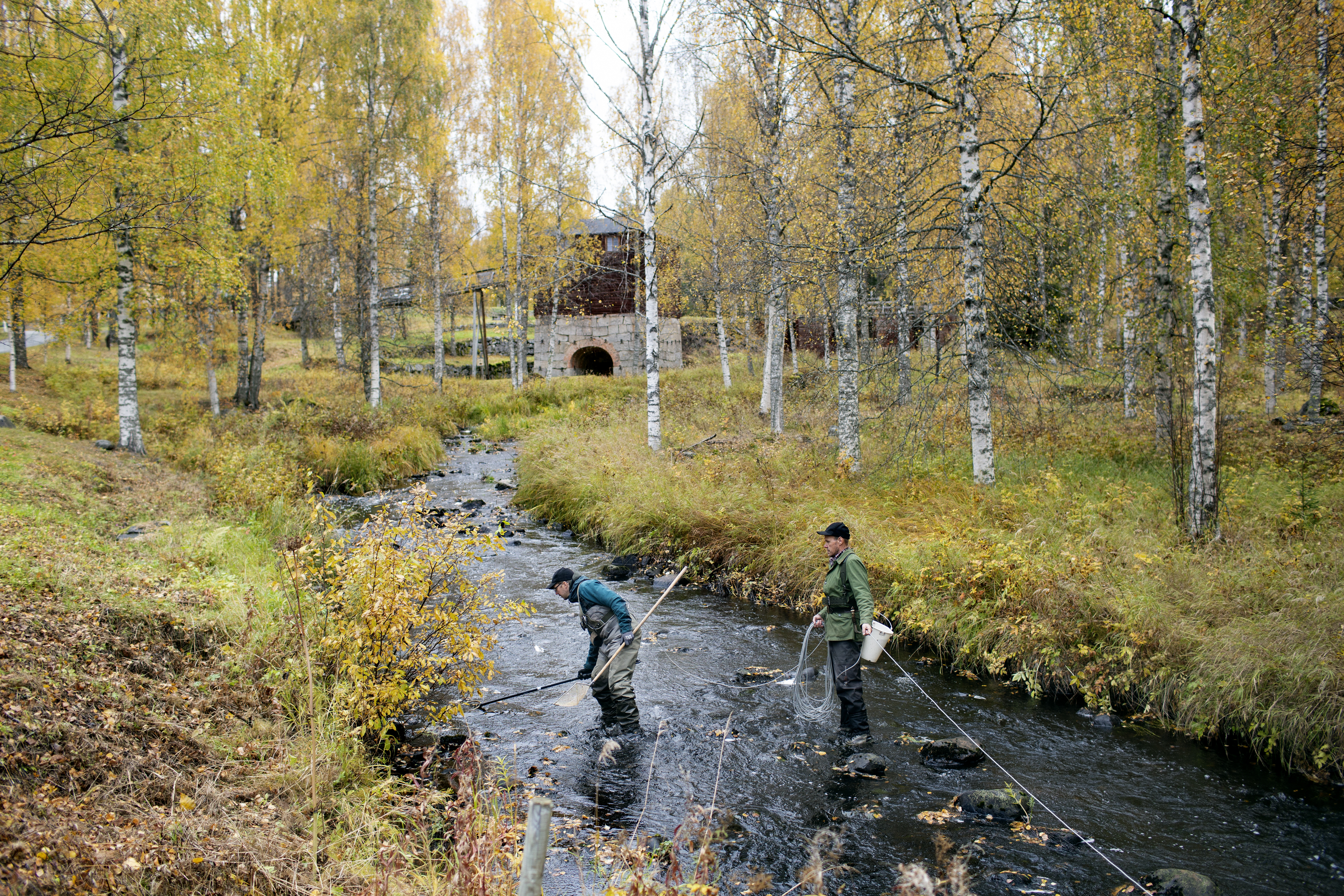 - Beskrivning: Lars-Göran Ek, Sveaskog, tar hjälp av Mikael Nilsson och Börje Lonni, Fiskmiljö AB, för att undersöka hur rikt fiskbeståndet är i Rosån. Mikael Nilsson och Börje Lonni har ett elaggregat kopplat till en lång sladd. I den sitter ett spö med en strömförande ring. Mikael Nilsson sveper med ringen i vattnet. Ser han en fisk så trycker han på en knapp och då bedövas fisken av el och håvas upp för att läggas i en hink med vatten. Där får fisken ligga och vakna till innan den släpps tillbaka. Genom att elfiska går det att få en bra uppskattning om vilka typer av fiskar som rör sig i olika vattendrag.
