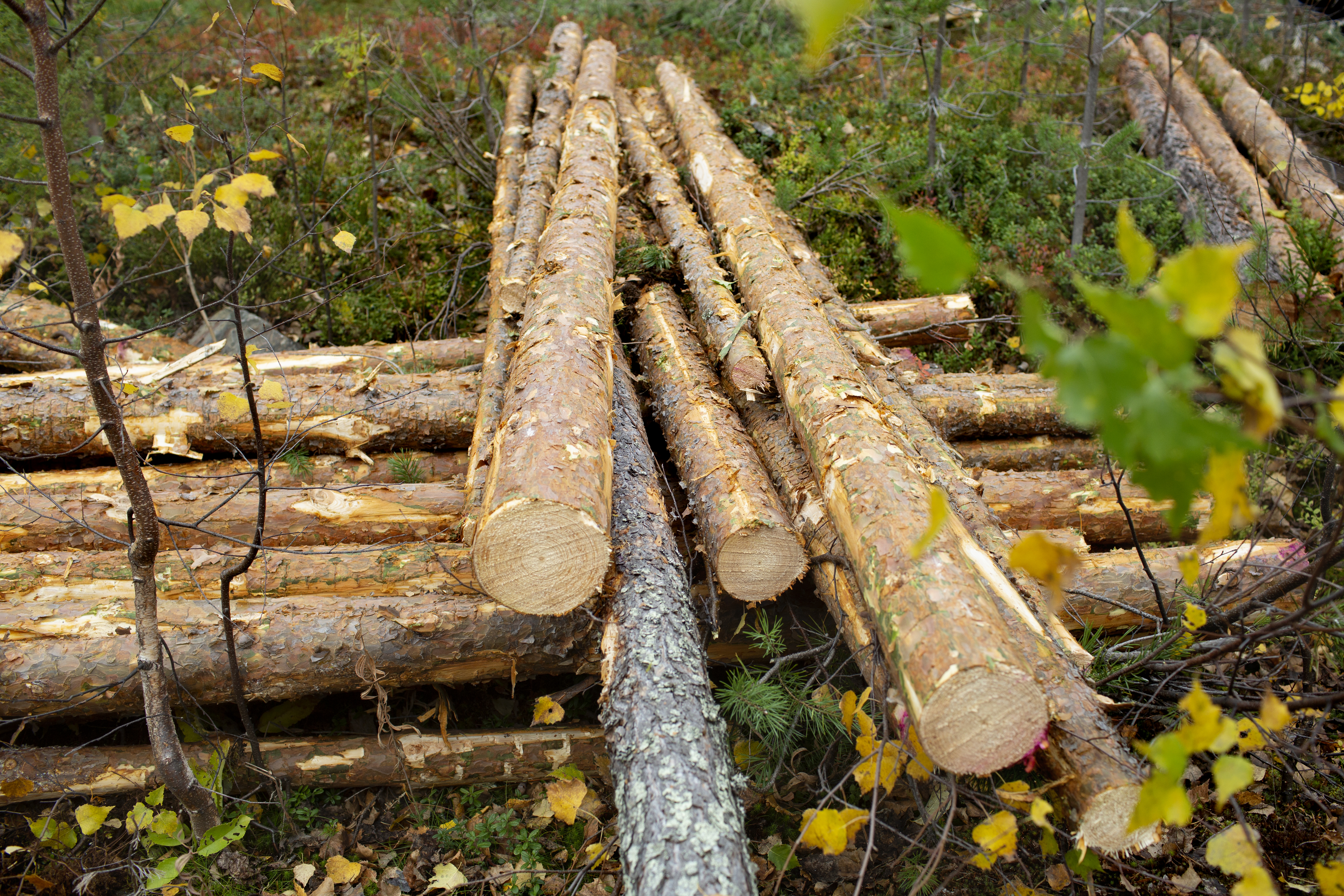 - Beskrivning: Maskinlag i Överkalix, timmer, stockar, virke, massaved