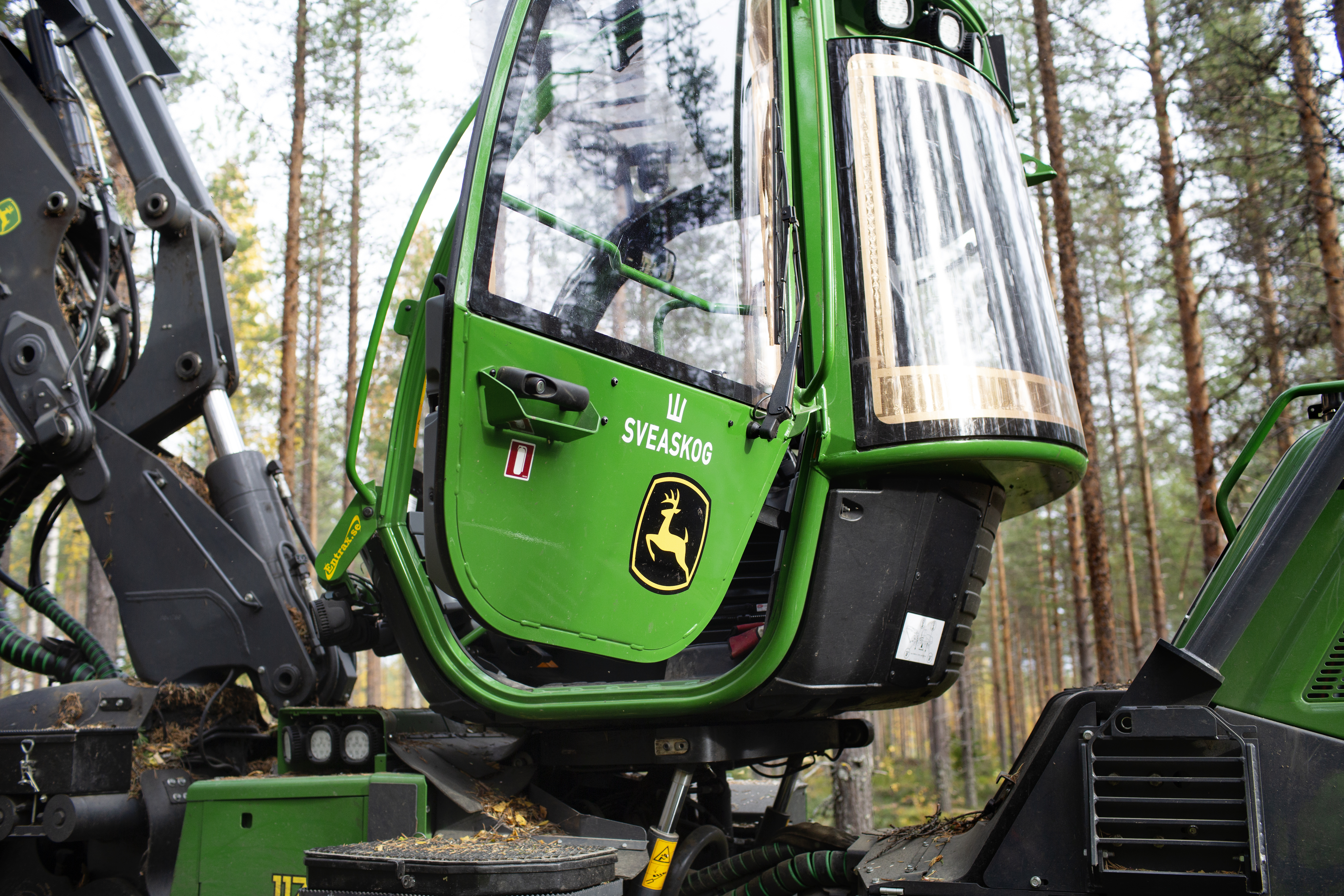 - Beskrivning: skogsmaskin, förarhytt, sveaskogs logotyp
