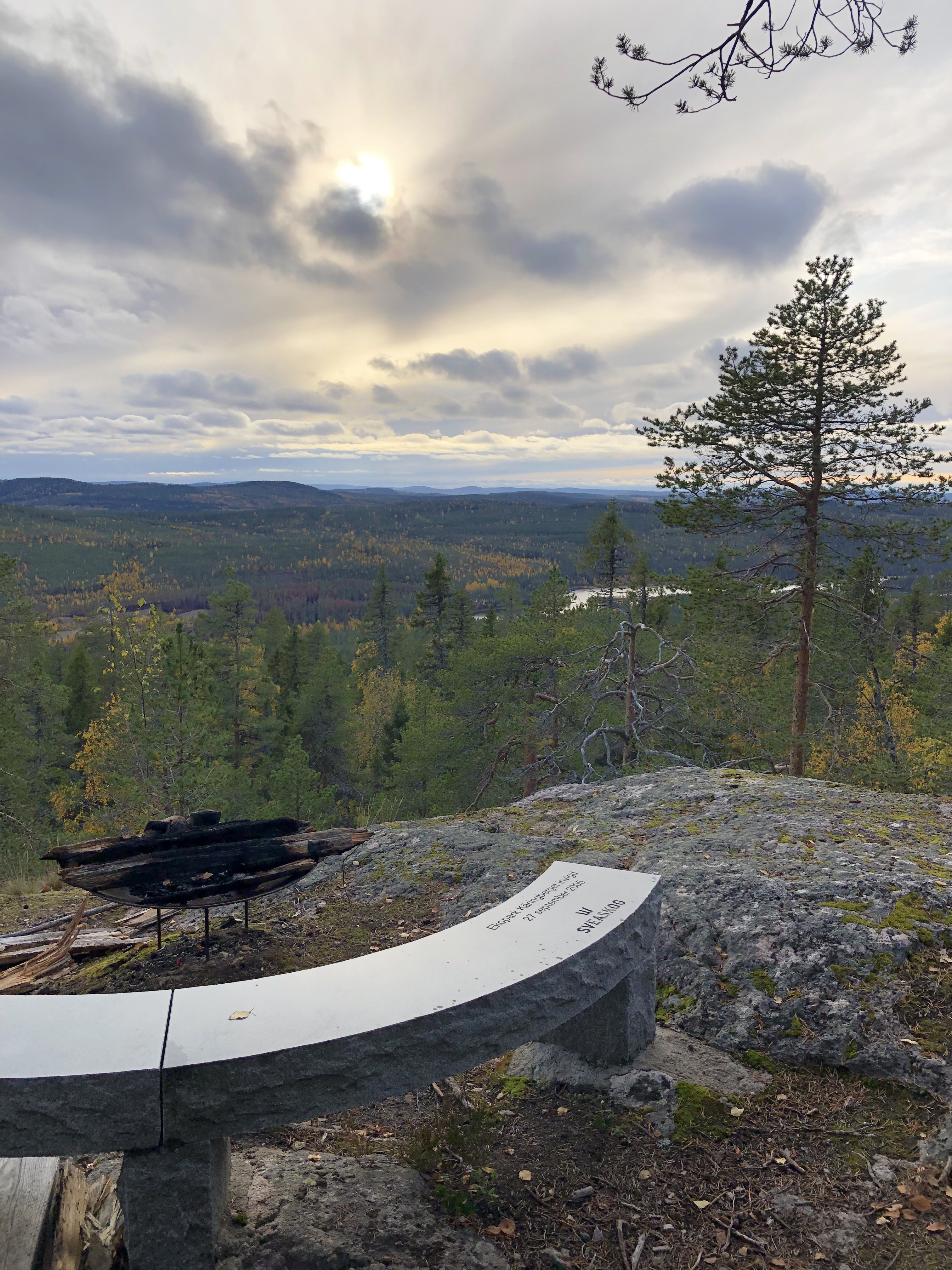 • Beskrivning: Utsikt från Ekopark Käringberget, ekoparksbänken, stenbänken