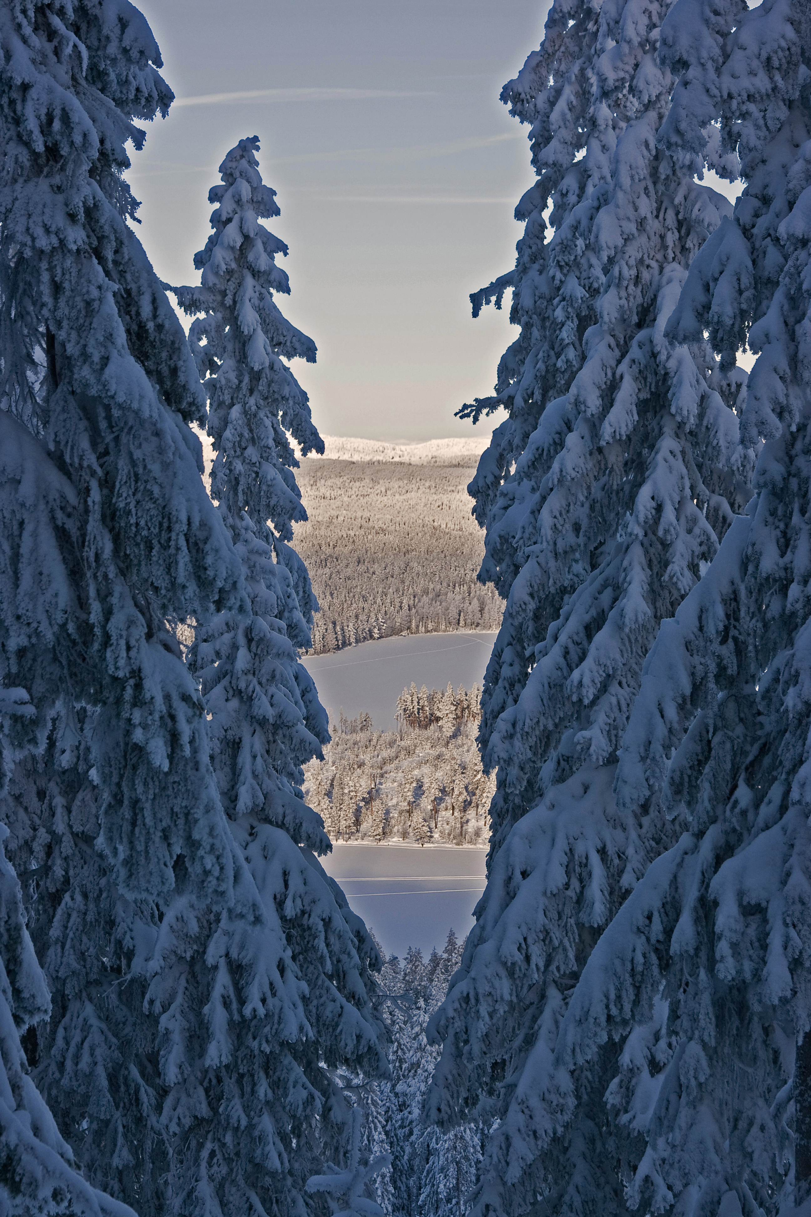 - Titel: Vintervy över Karbosjön från Boaberget