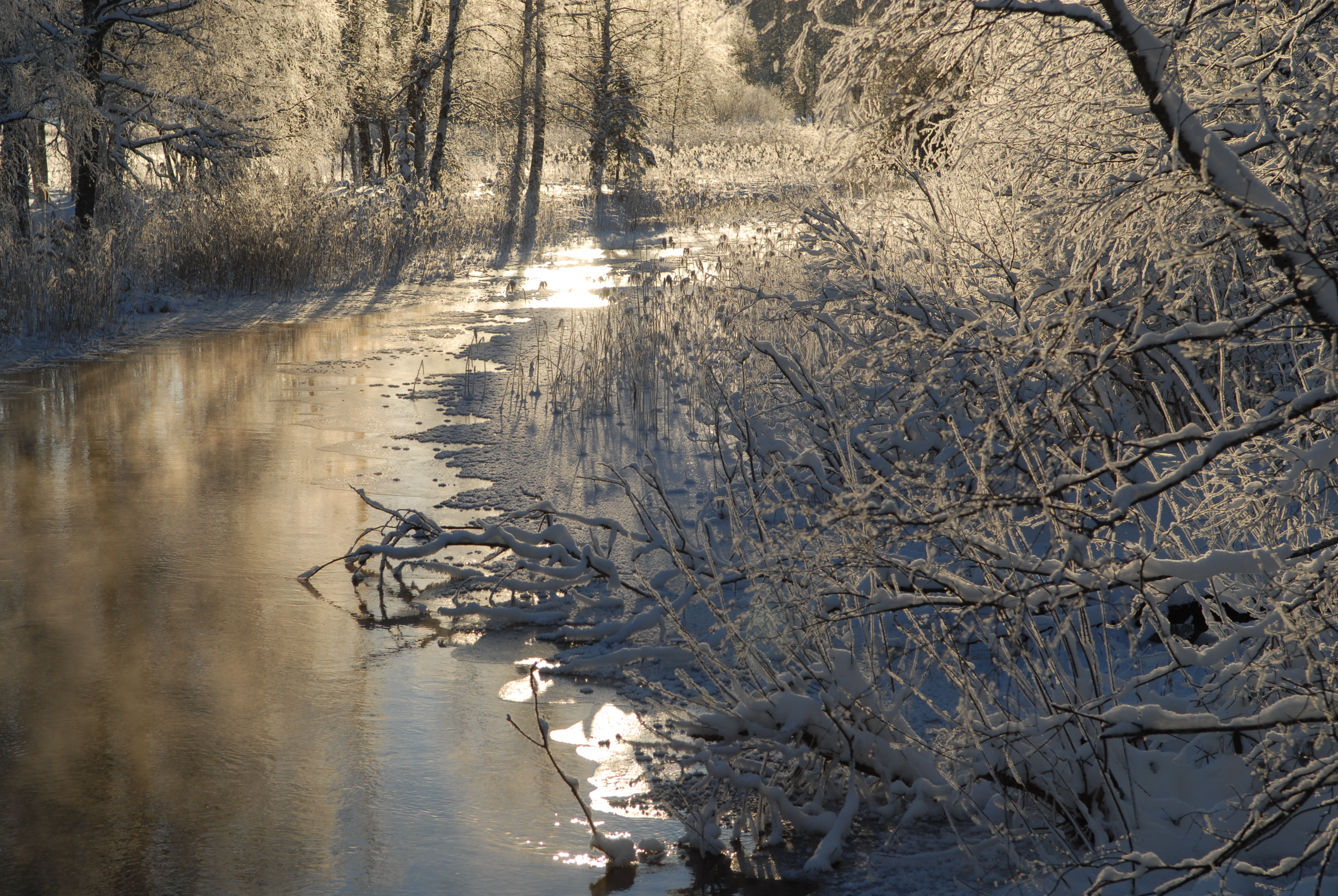 - Beskrivning: Bäck, å, vinter, is, fryser