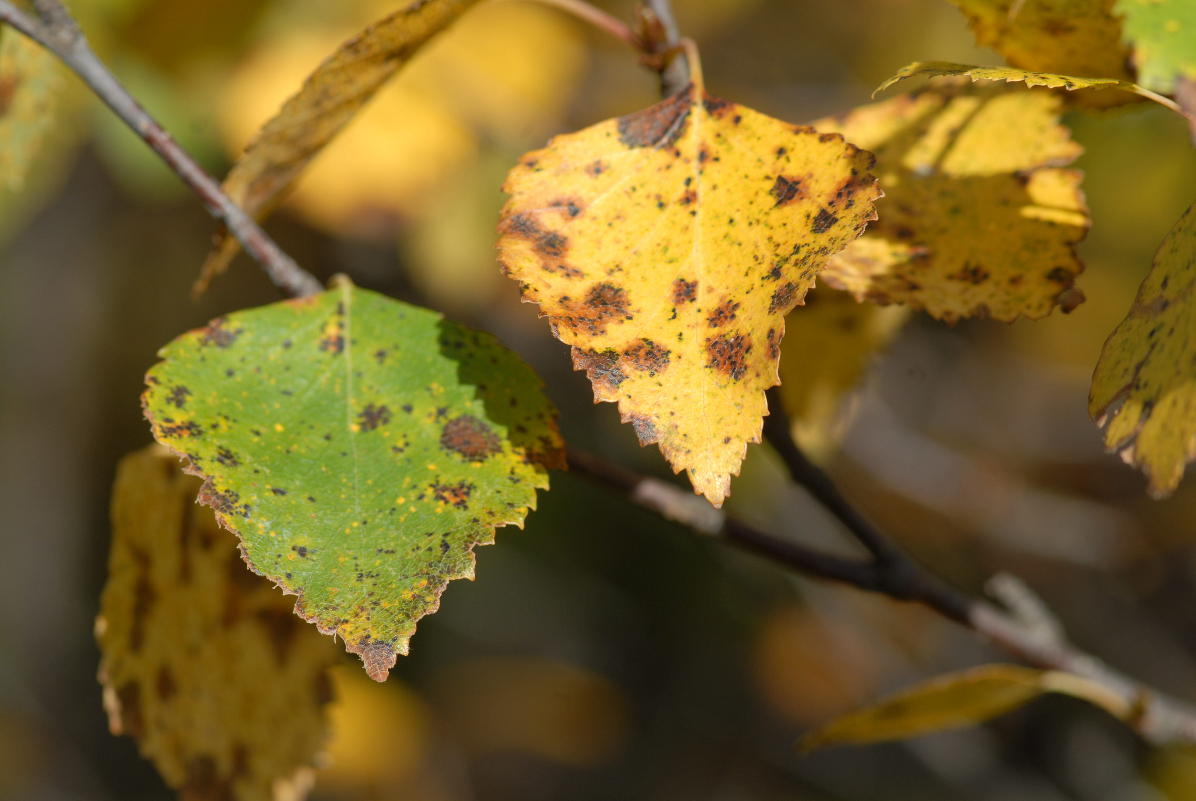 - Beskrivning: Björklöv i höstfärger