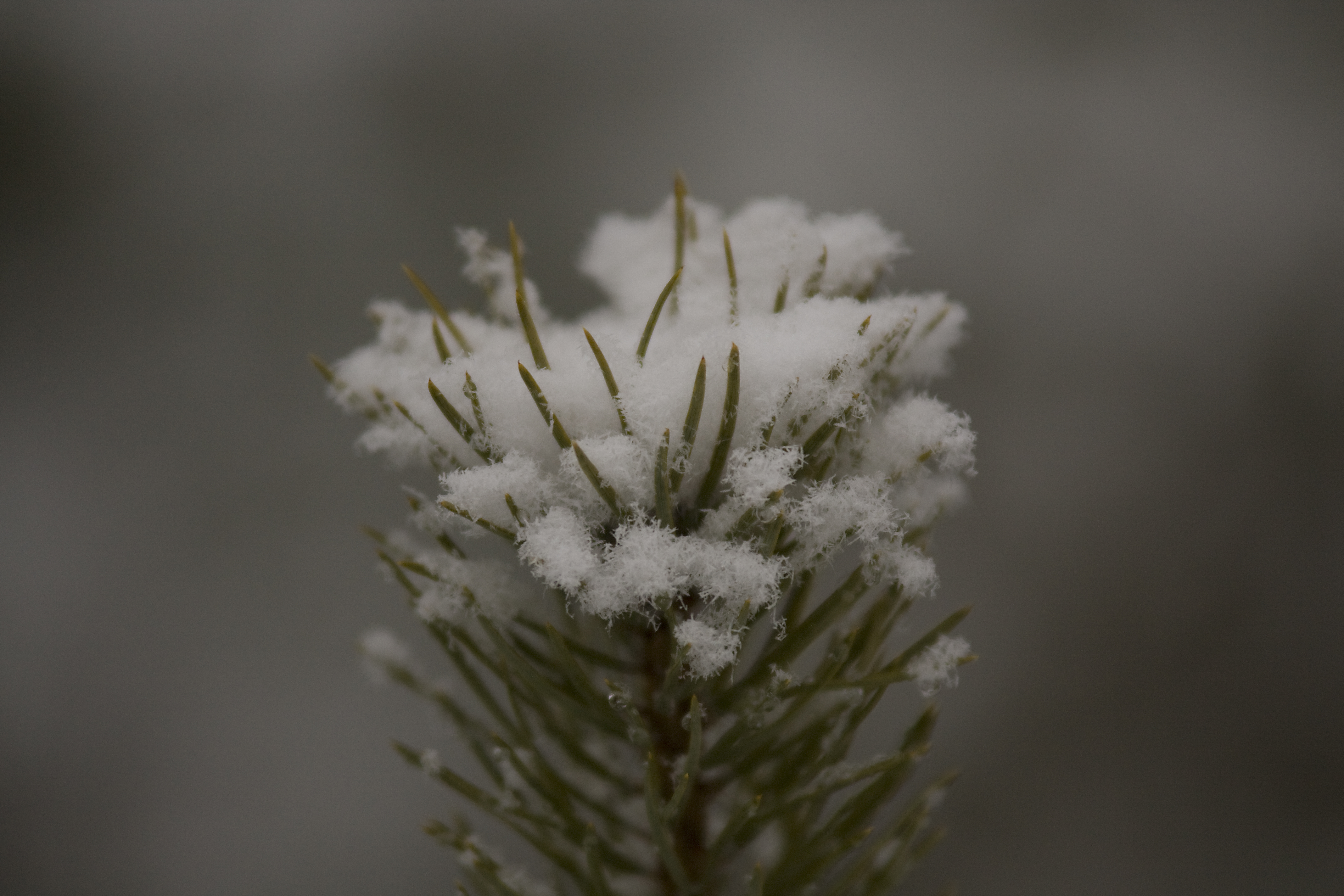 - Beskrivning: Tallskott, årsskott med snö och frost, snöflingor, iskristaller