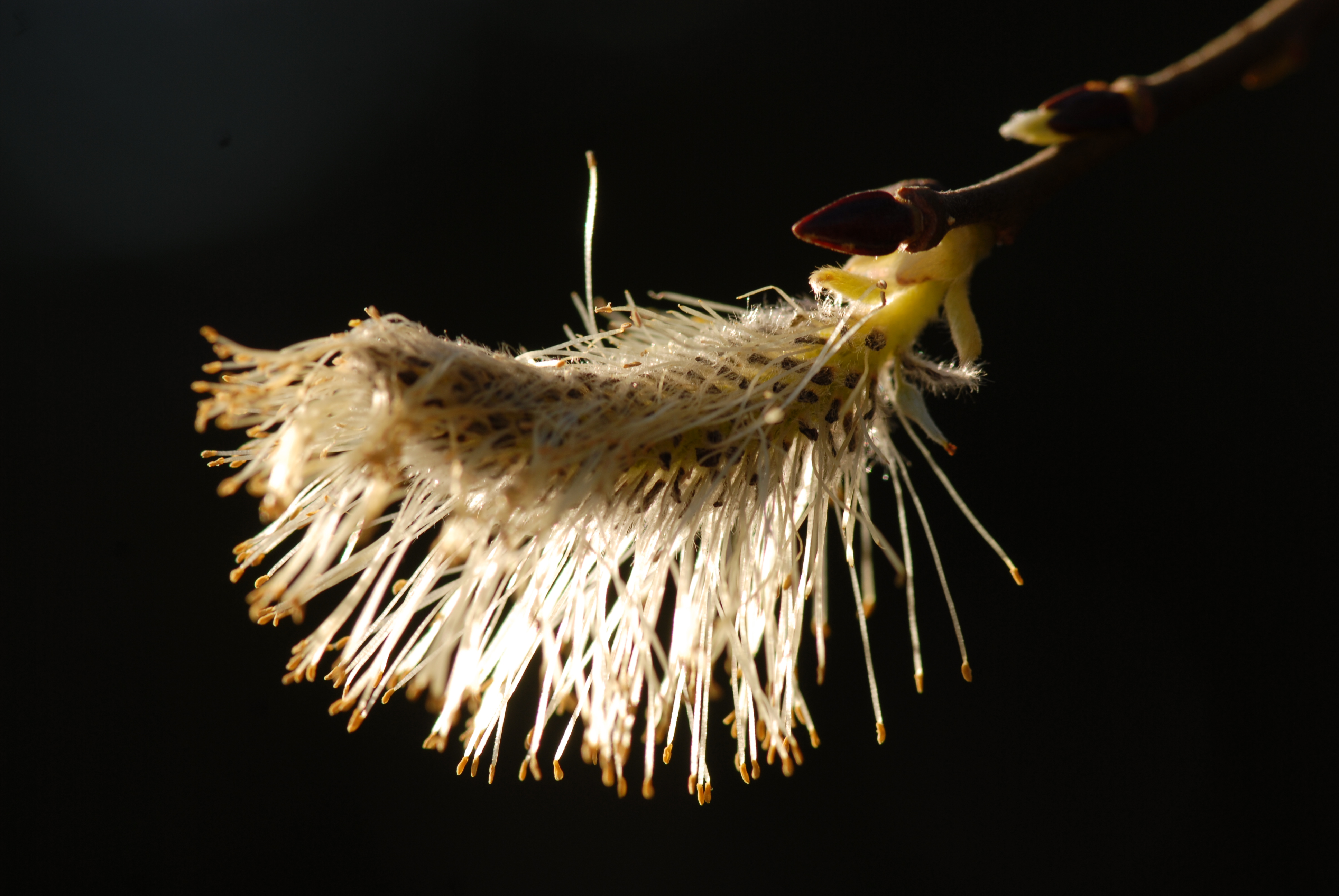 - Beskrivning: Vide i blom, lövsprickning