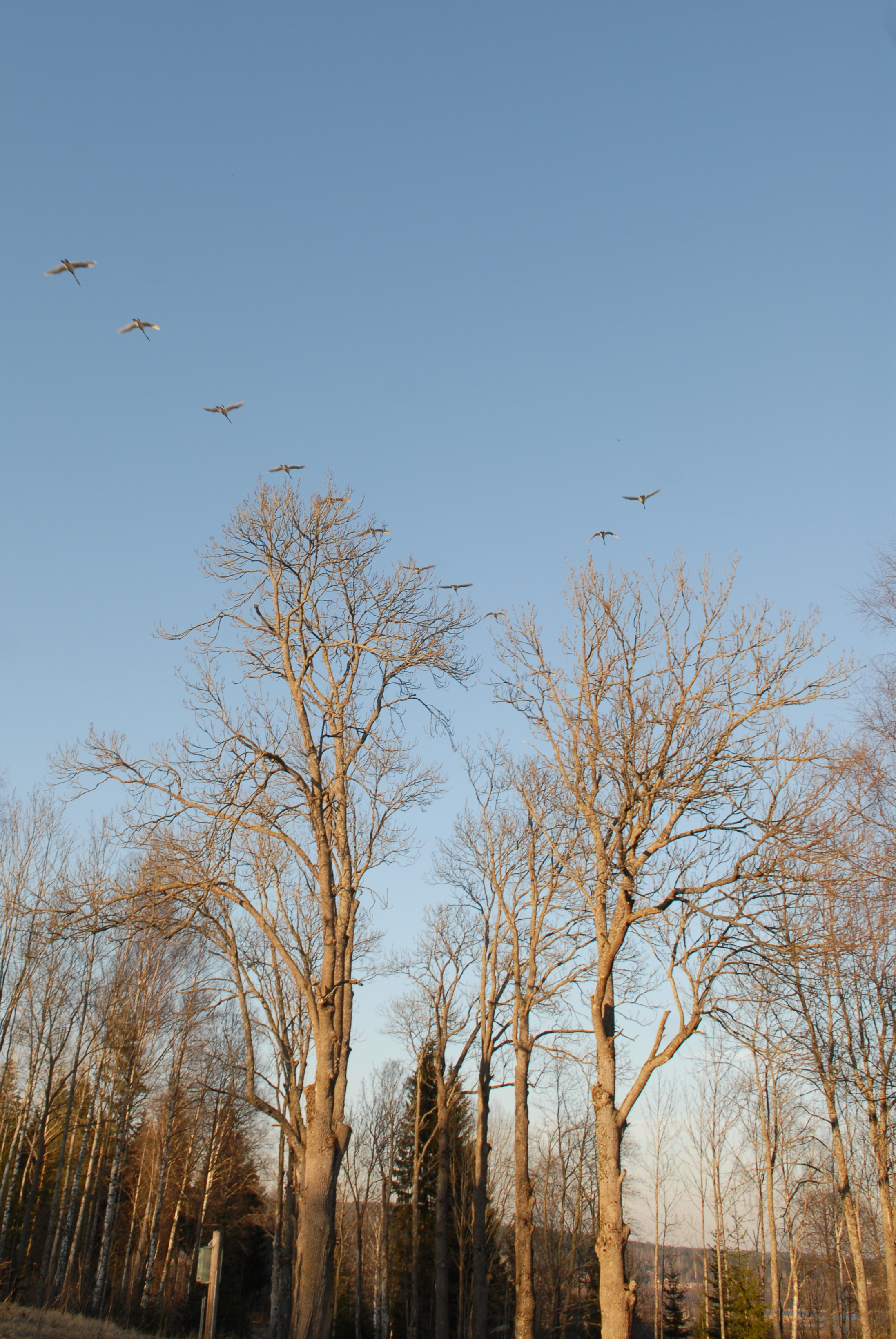 - Beskrivning: Gäss i V-formation, fågel, flytt söderut, höst