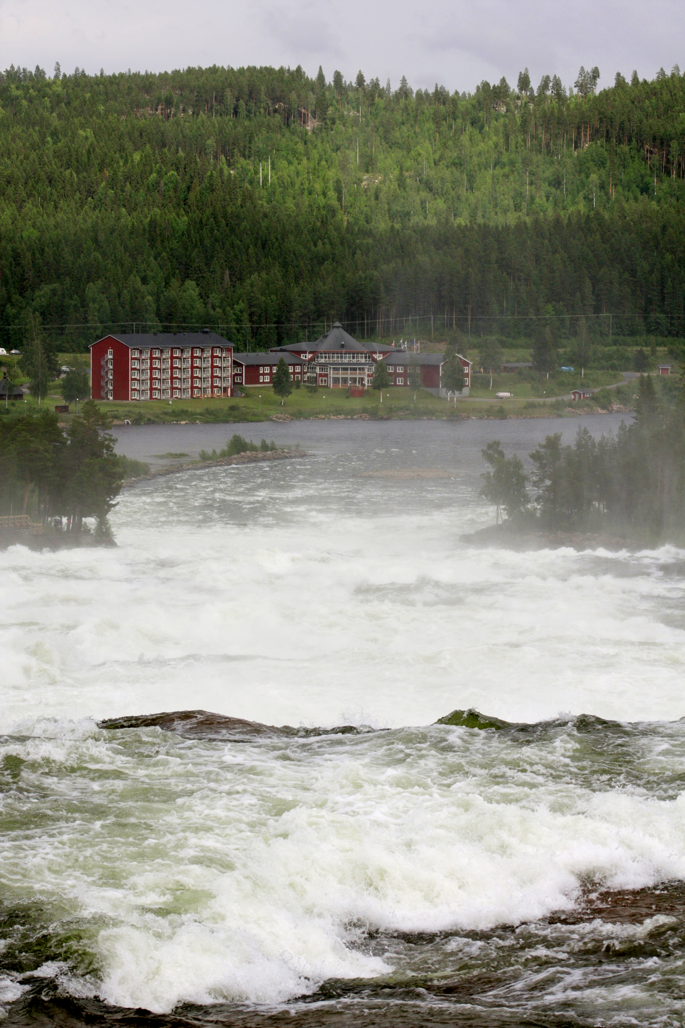 - Beskrivning: Storforsen, längst bort syns hotellet