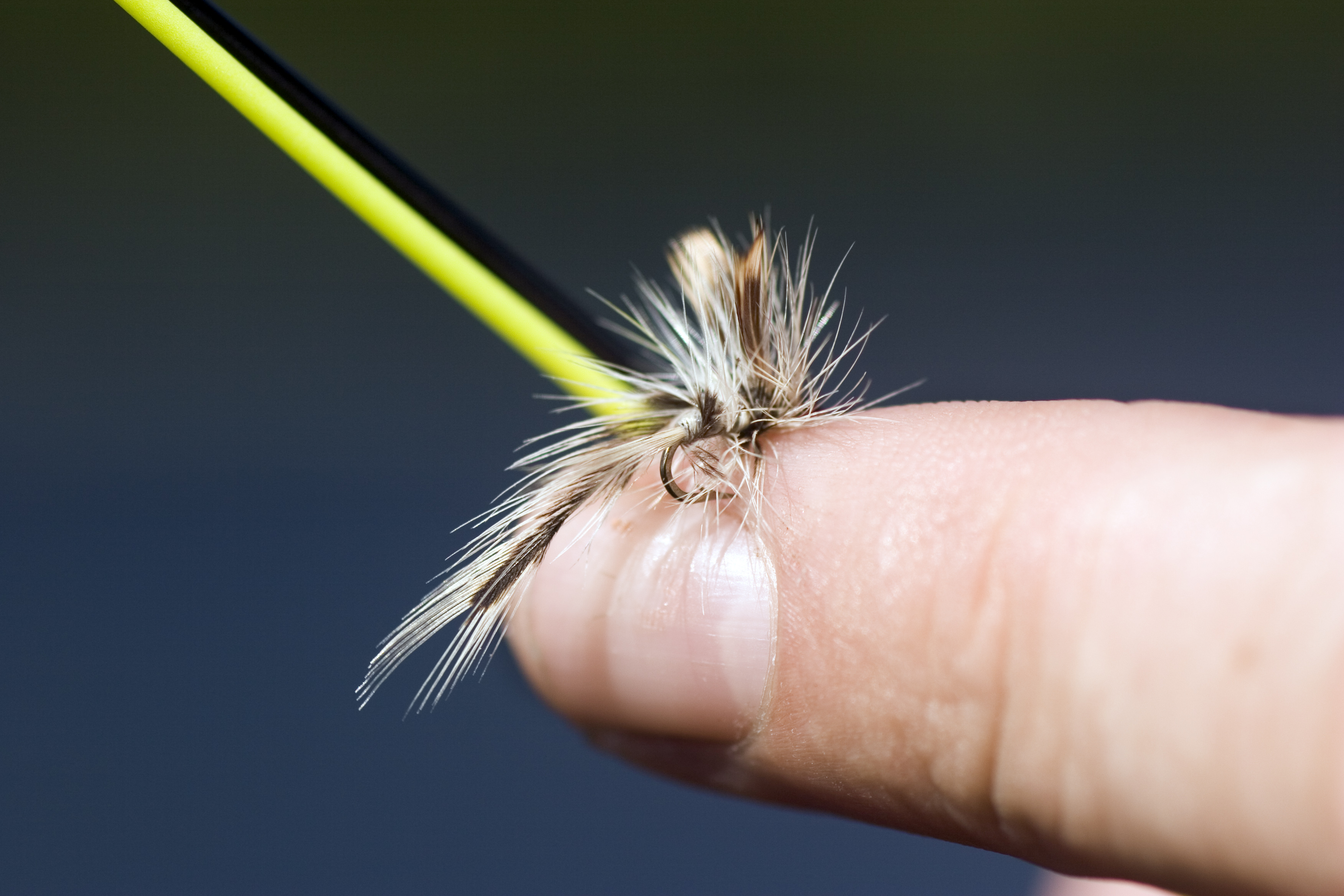 Fiskefluga på finger