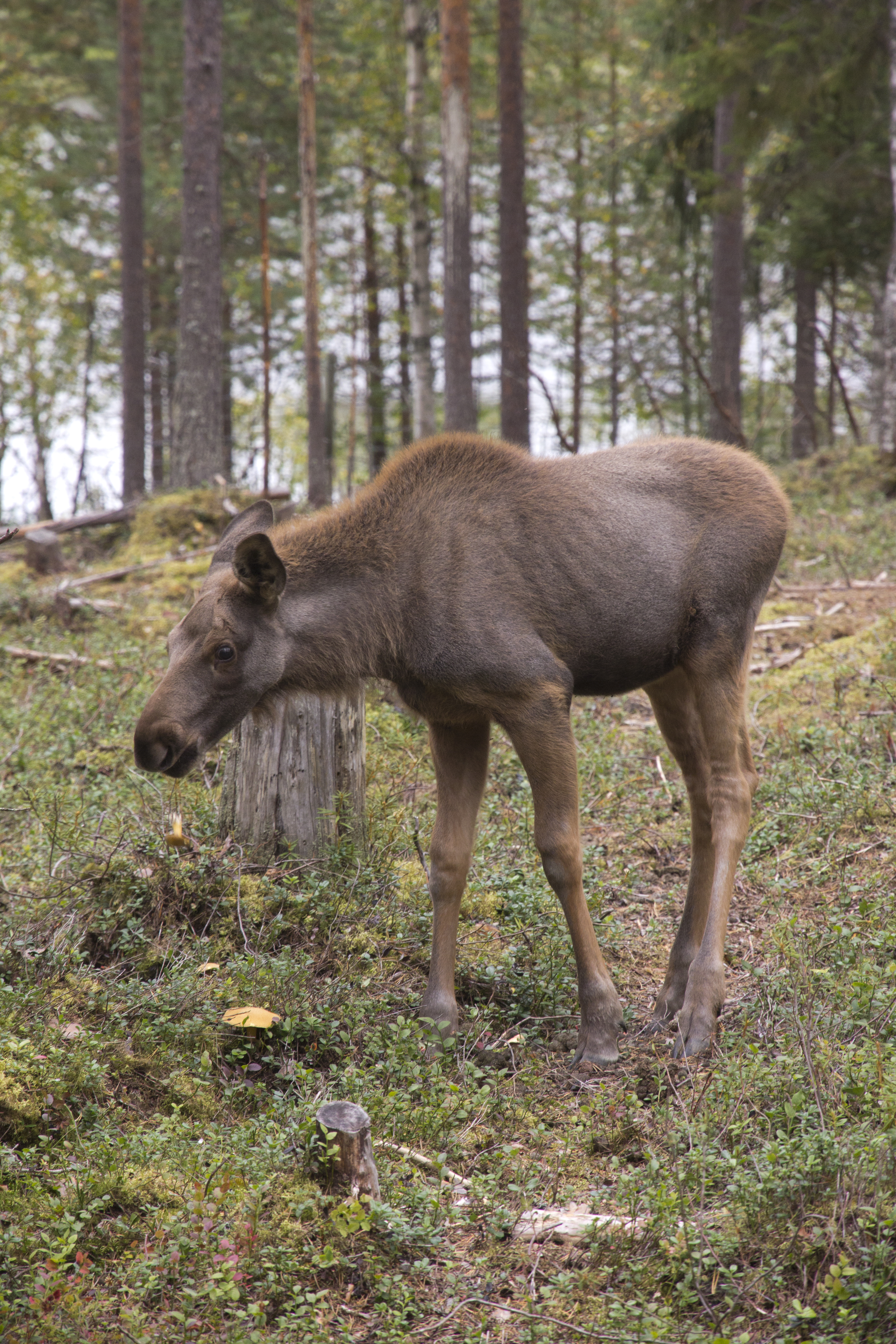 - Beskrivning: Ensam älgkalv på Arctic Moose Farm