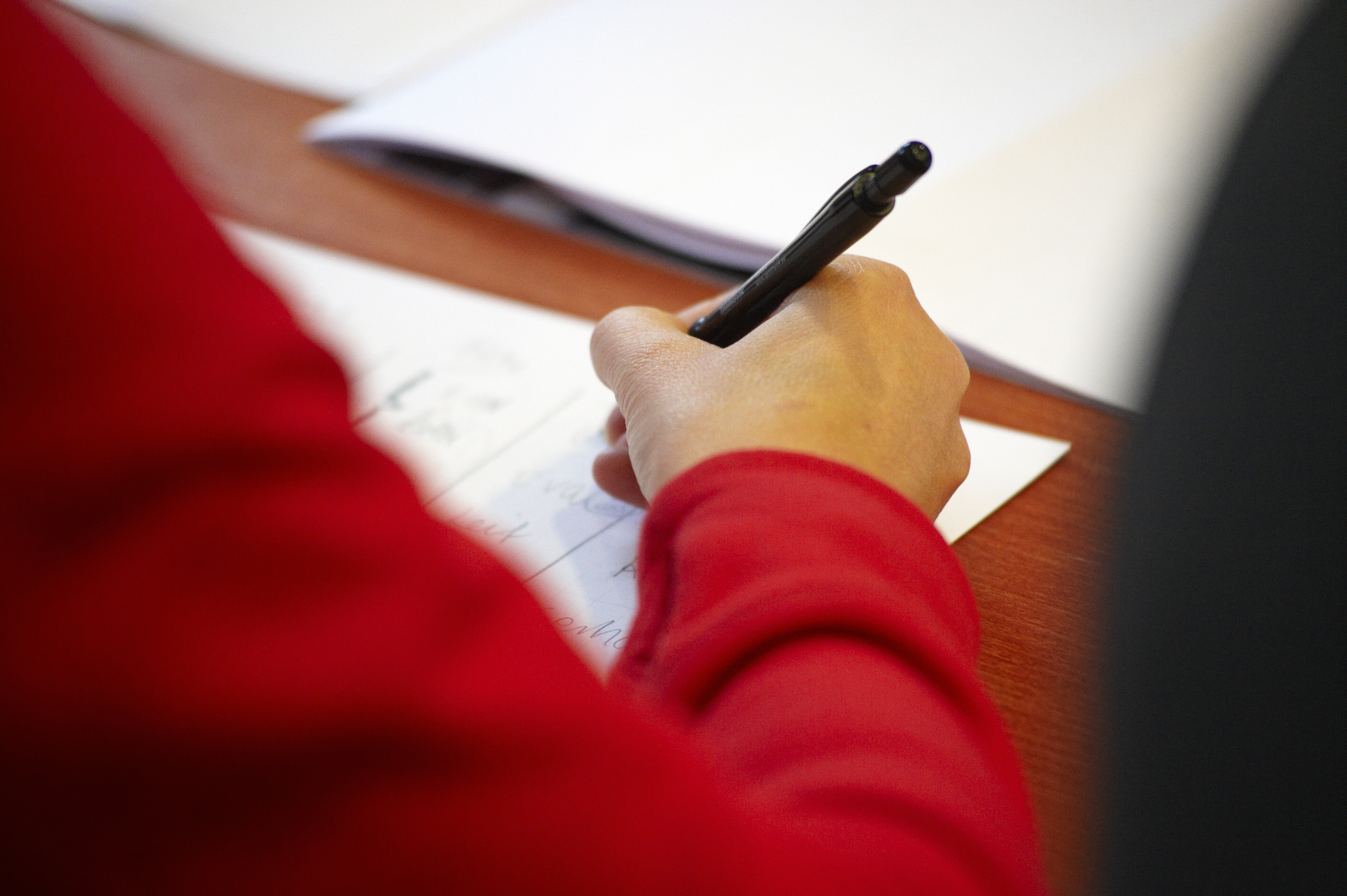 - Beskrivning: Man som skriver, antecknar, chefsmöte Tammsvik 091118