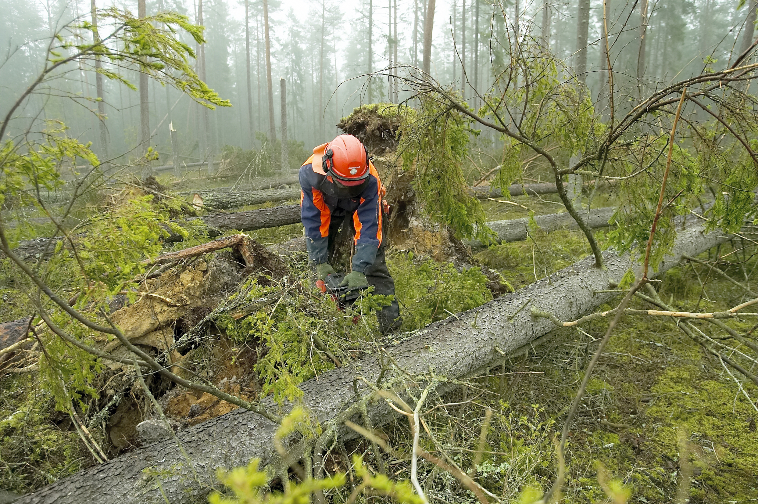- Beskrivning: Vindfällen, skogsarbetare, storm, gudrun