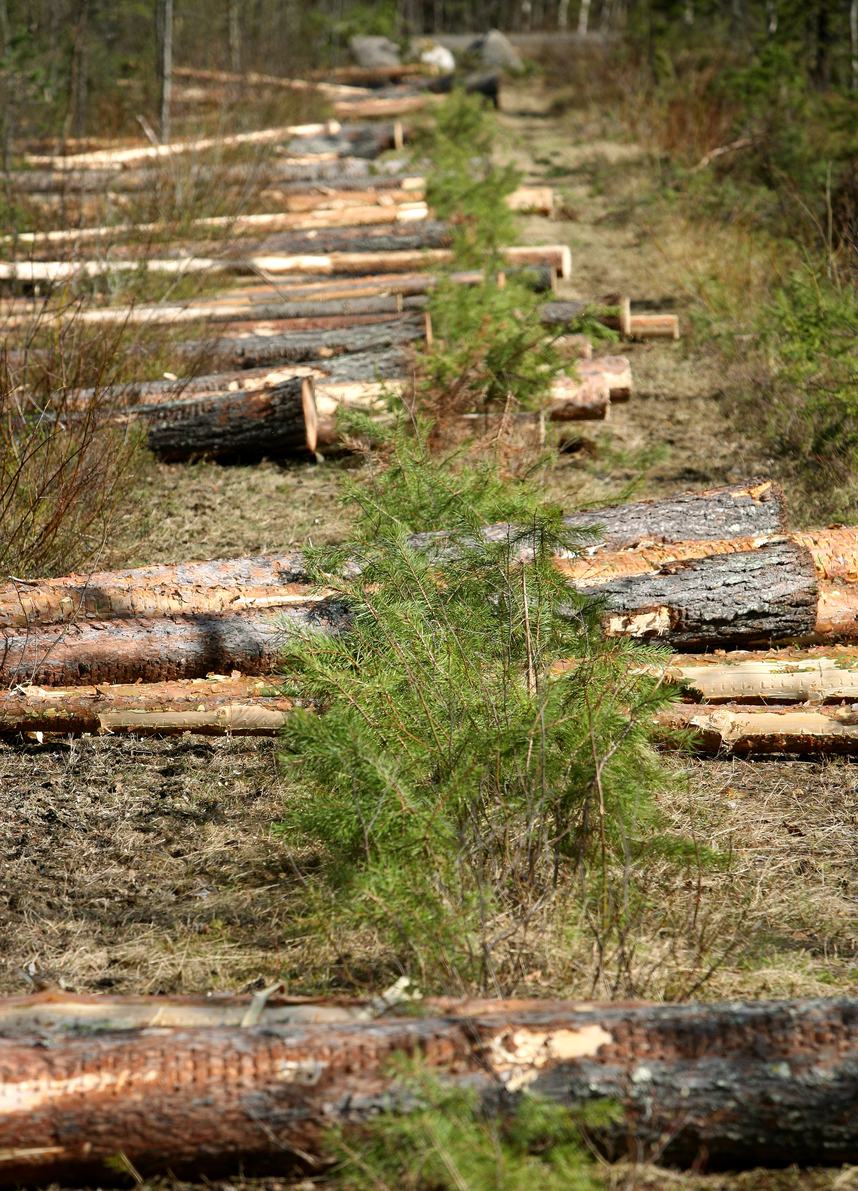 - Beskrivning: Skördare, skogsmaskiner Så här ser det ut när skördaren har lagt ut virket efter avverkningen.