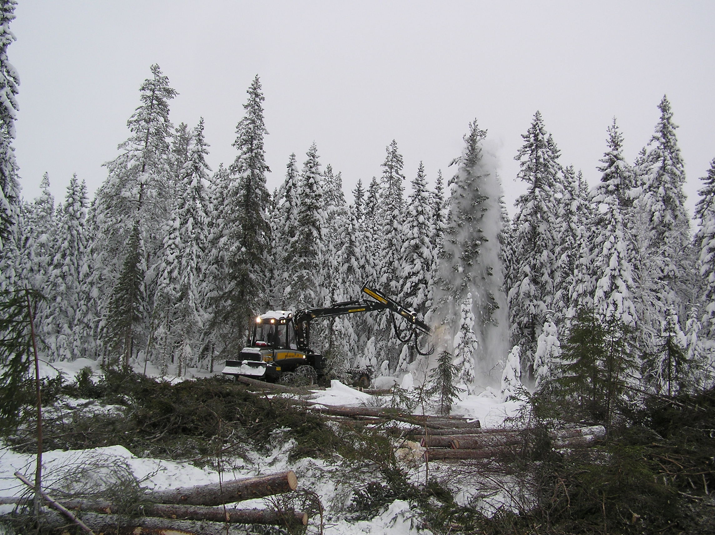 - Beskrivning: Skogsmaskiner, skördare i arbete, Ponnse