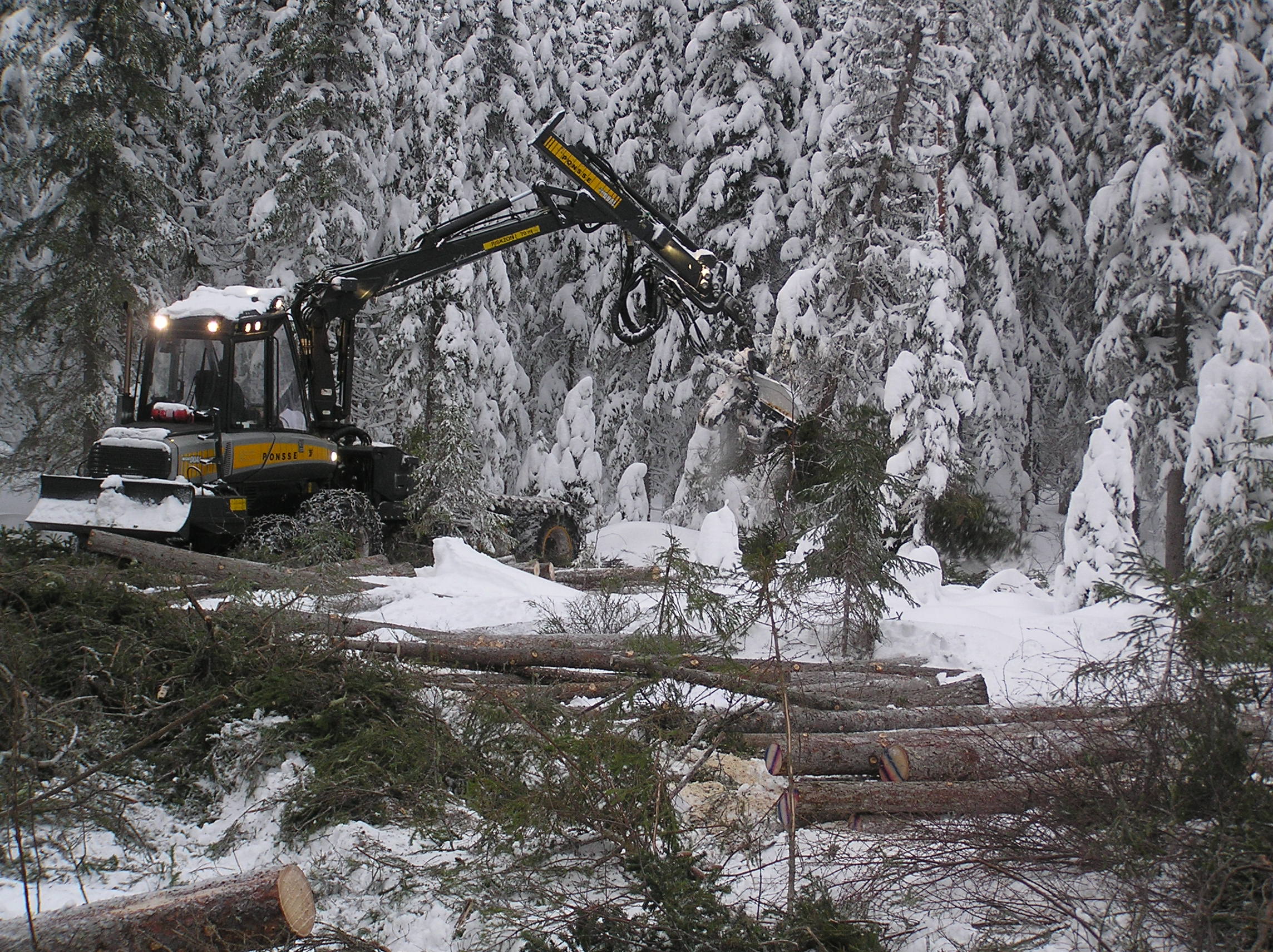 - Beskrivning: Skogsmaskiner, skördare i arbete, Ponnse