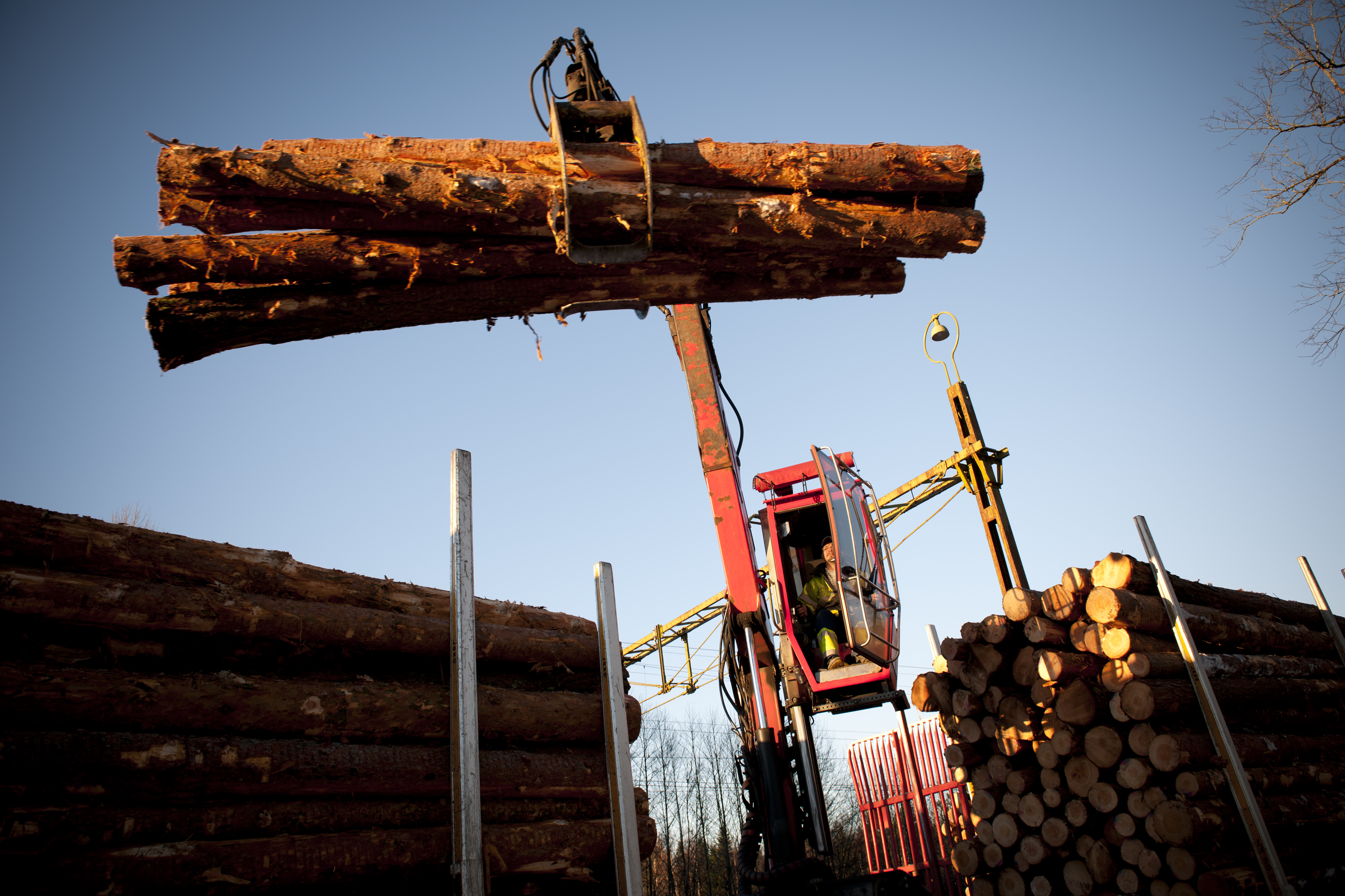 - Beskrivning: Virkestransport till tåg, timmer, lastning Timmerlastning Hasselfors 16 nov 2010