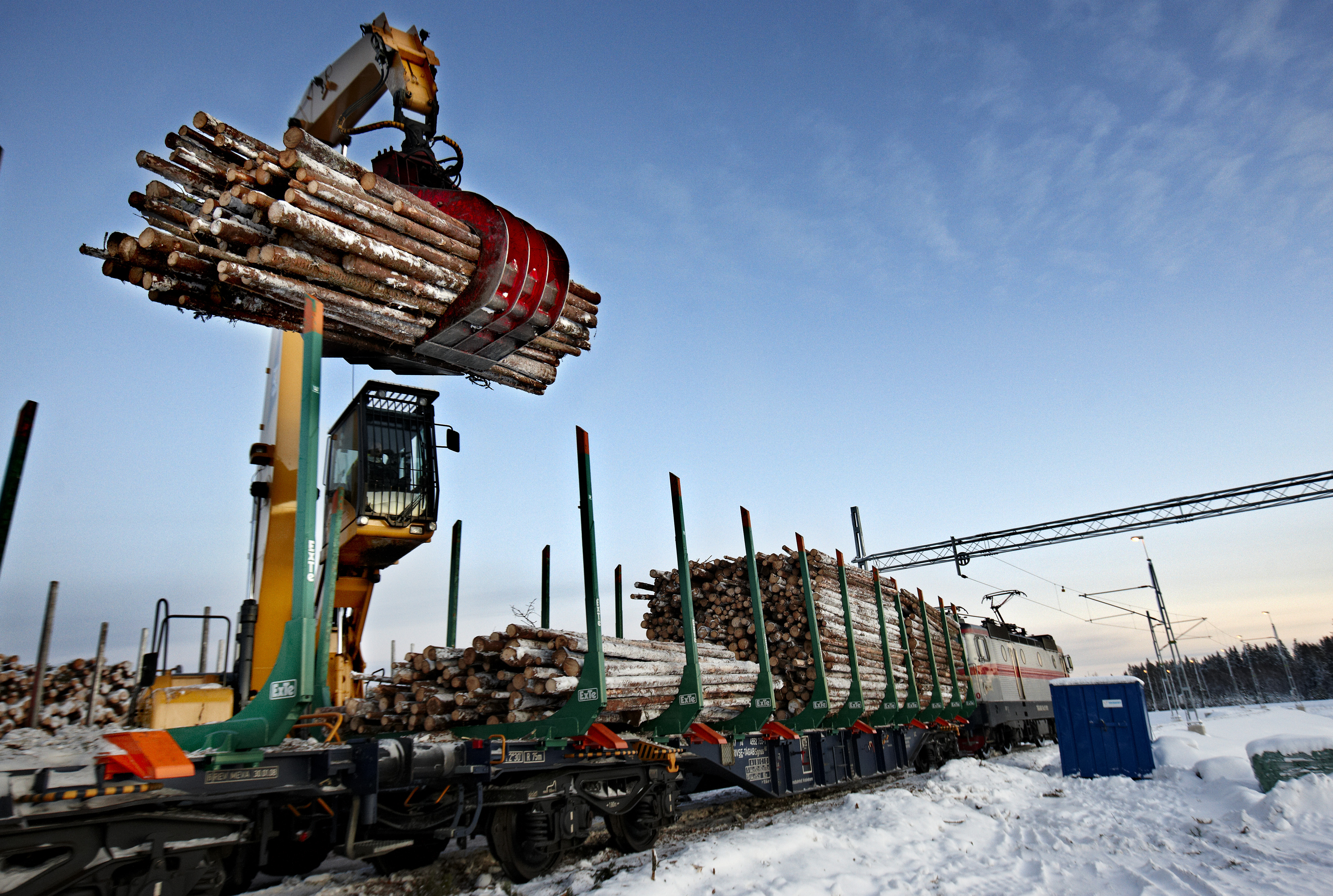 - Beskrivning: Logistik, lastning, lossning, tåg, virke, timmer, stockar, järnväg. Stockaryd 2010-12-09