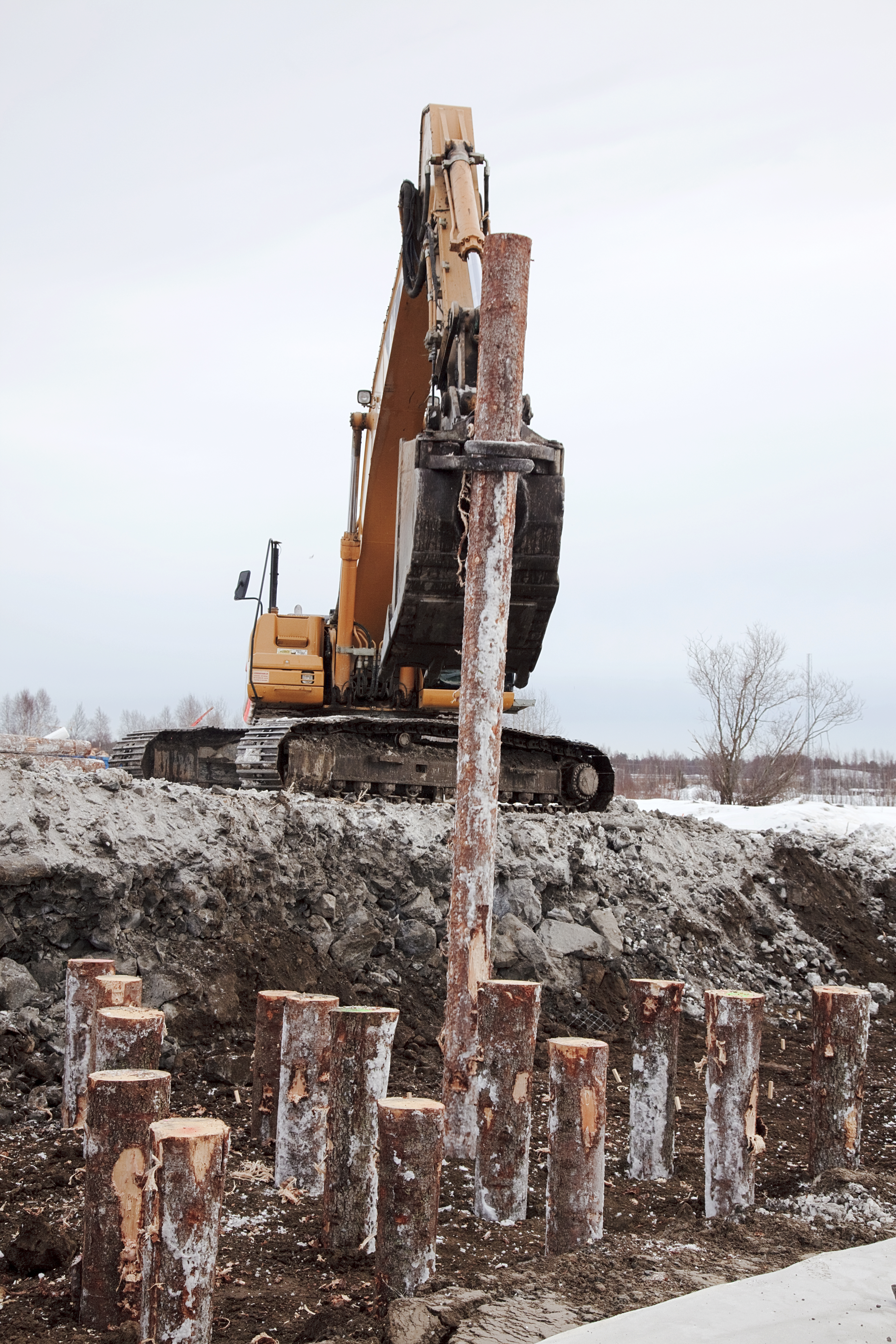 - Beskrivning: Pålning, 7 500 pålar av gran bankas ner i backen för att göra nya norra länken i Umeå körbar.