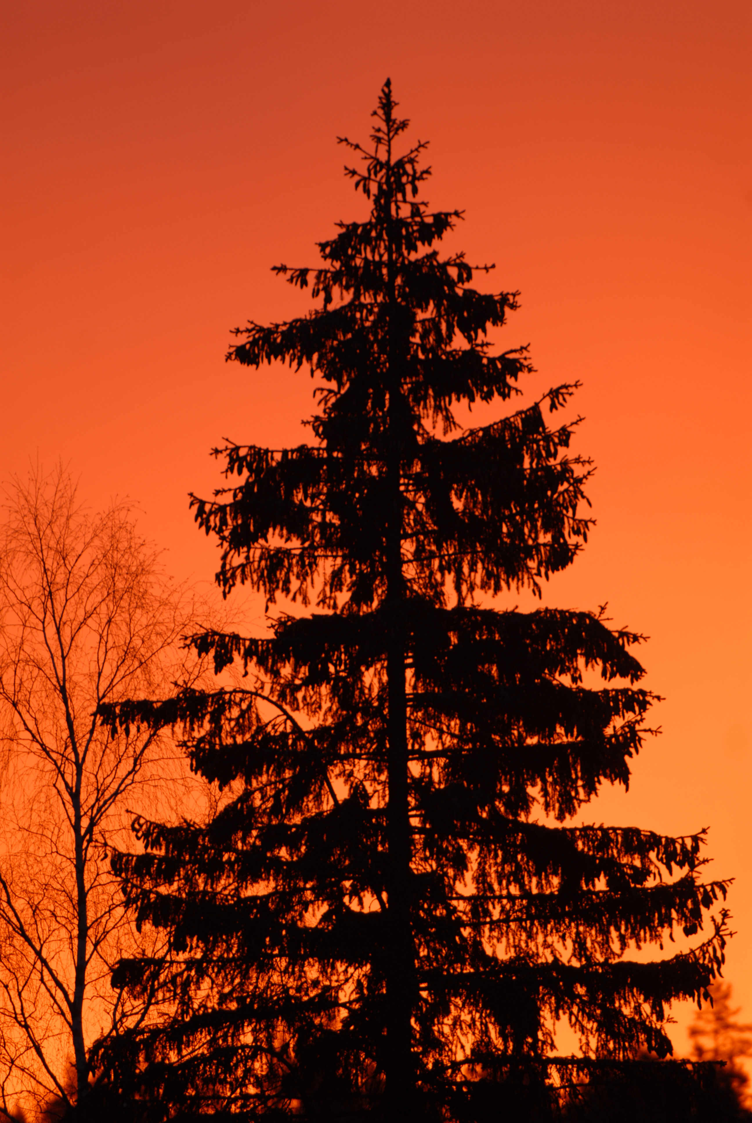 - Beskrivning: Gran i solnedgång