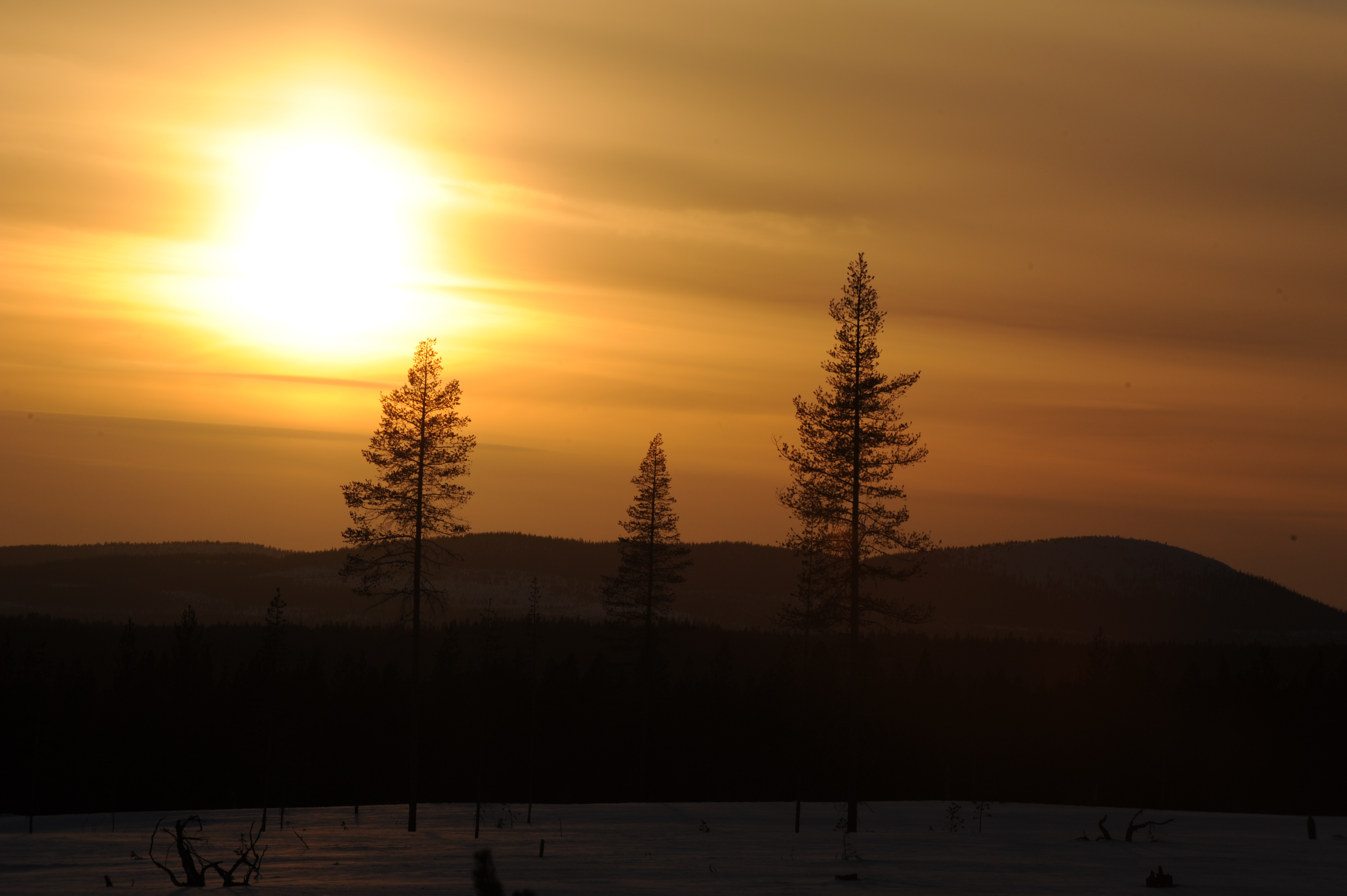 - Beskrivning: Tallar i solnedgång