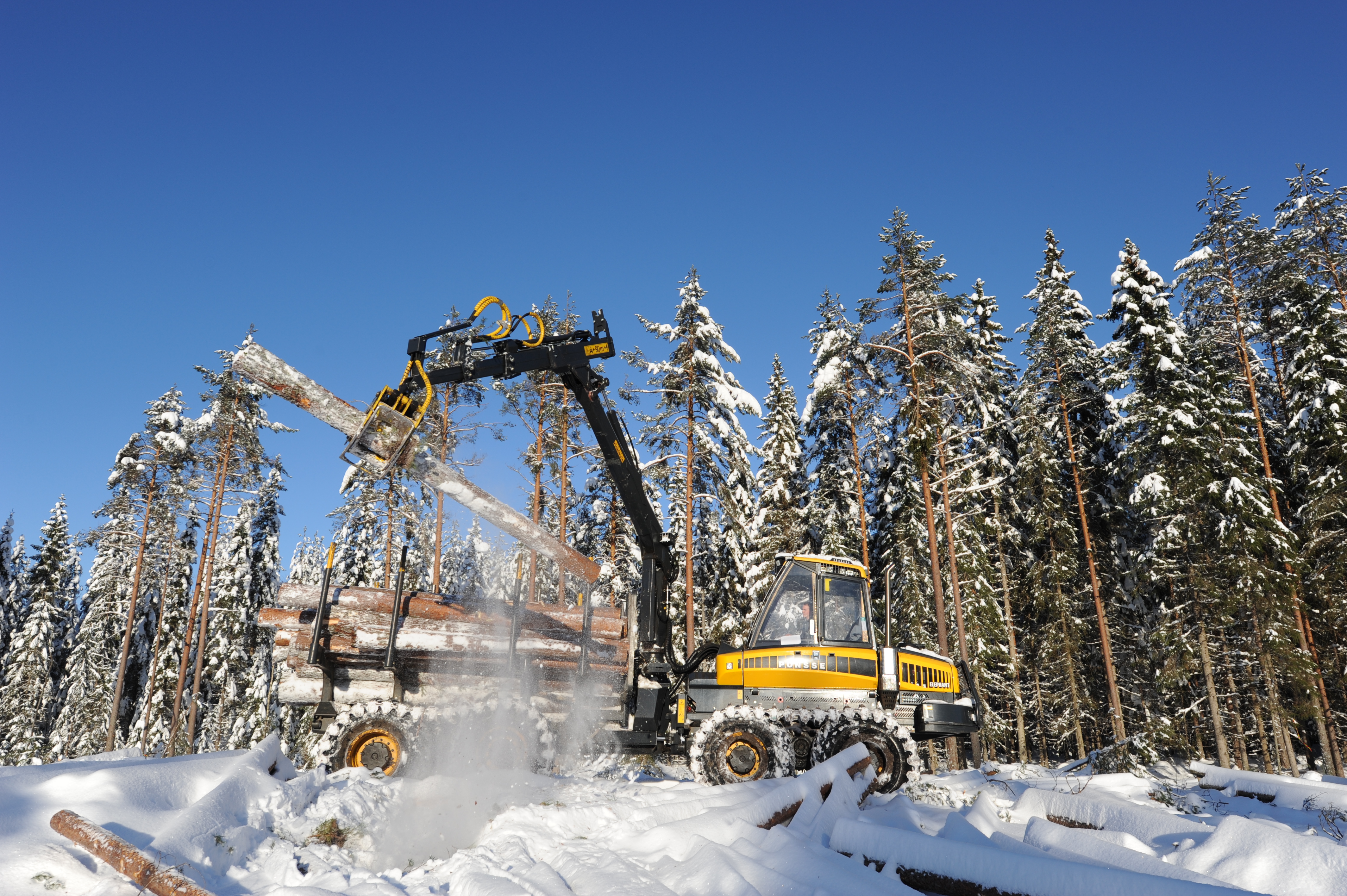 - Beskrivning: Skotare, Ponsse. Han ligger långt efter med skotningen, så ett snöfall har täckt virket. Skotaren tvingas gräva fram virket som har gömts under snön.