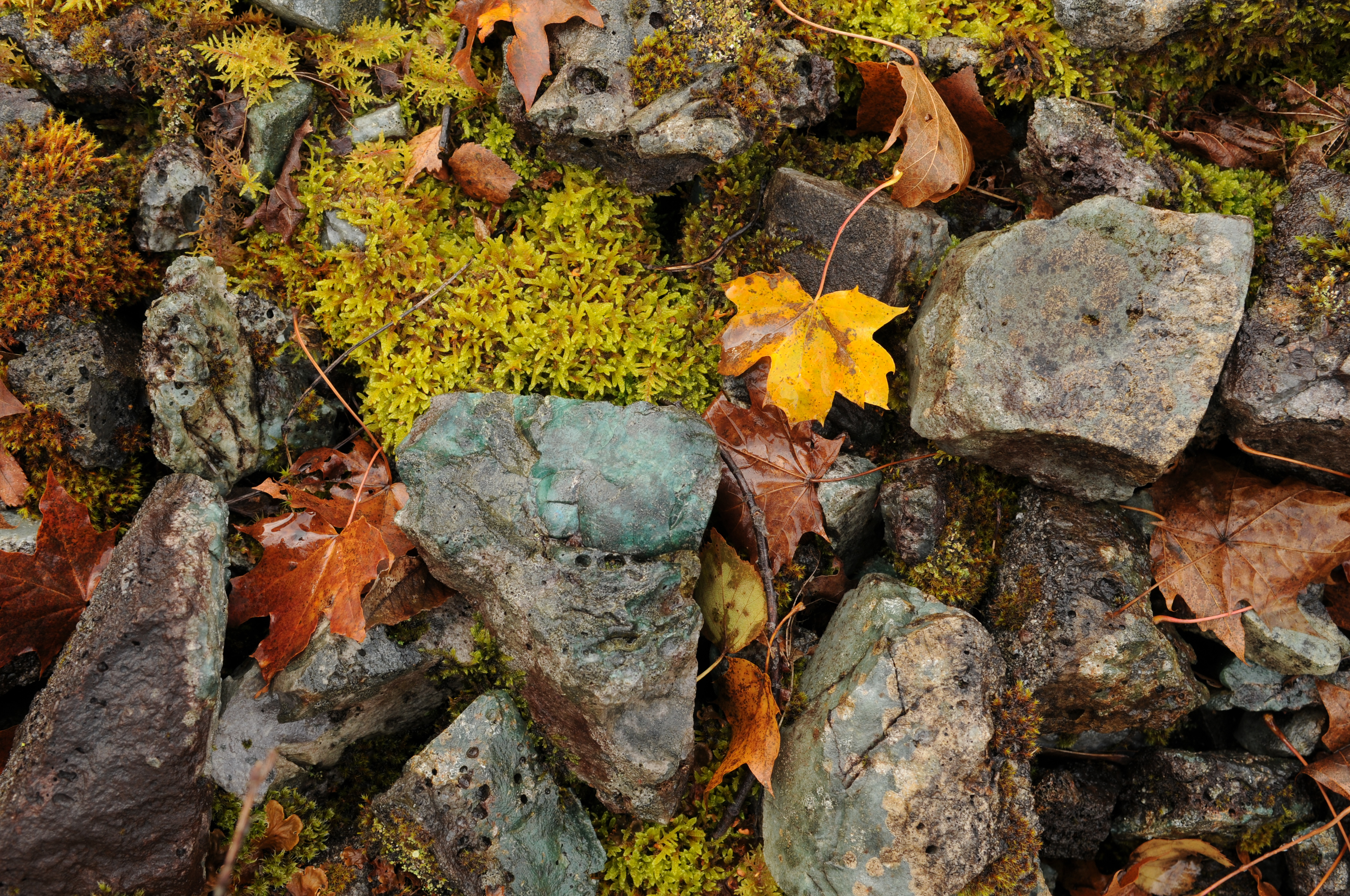 Mosssa och höstlöv