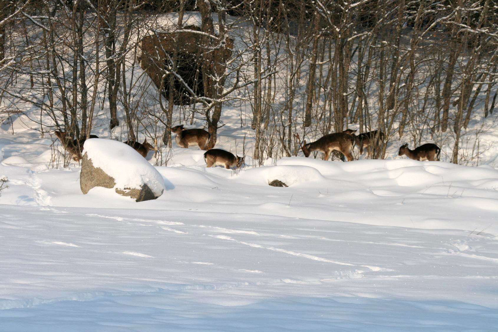 - Beskrivning: Dovviltsgrupp betar av aspsly och barkgnag.