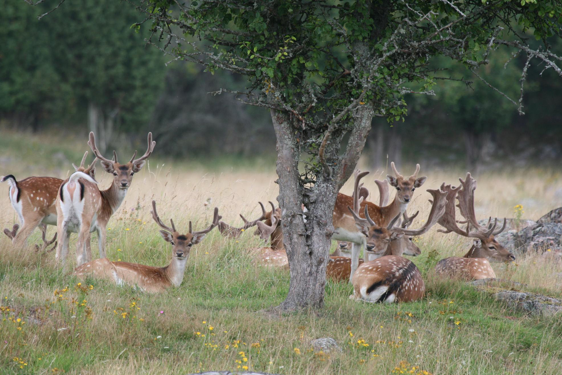 • Beskrivning: Stånghjortar och någon skovel under vildapel.