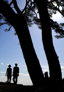 Beskrivning: Par på kvällspromenad. Ekopark Böda.