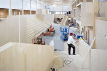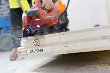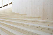Beskrivning: Vad som för drygt 70 år sedan startade som ett småskaligt snickeri i Sikfors utanför Piteå har idag utvecklats till en betydande leverantör för den japanska virkesmarknaden, råvara i rätt längd och kvalitet förädlas av Stenvalls Trä till lamina för jordbävnings säkra hus i Tokyo och Osaka, Forum Sveaskog nr 1 2020, trappa, rött hus, snö, vinter, arbetare, reflexväst, sågverk, snickeri