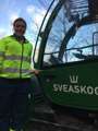 Beskrivning: Rickard Johansson anställd maskinförare på NOE Skogsbruk AB (entreprenör), lag 6659. Skogen ska hanteras med respekt, I arbetet med att förvalta varje enskilt träd så att bästa möjliga värde skapas ur skogen spelar maskinlaget en nyckelroll. Genom kontinuerlig uppföljning blir misstagen färre och kunderna nöjda, Manuell mätning av stammarna, dataklave, virkeskvalitet, klavning, klavverktyg, dataklave, skogsbruk, klave